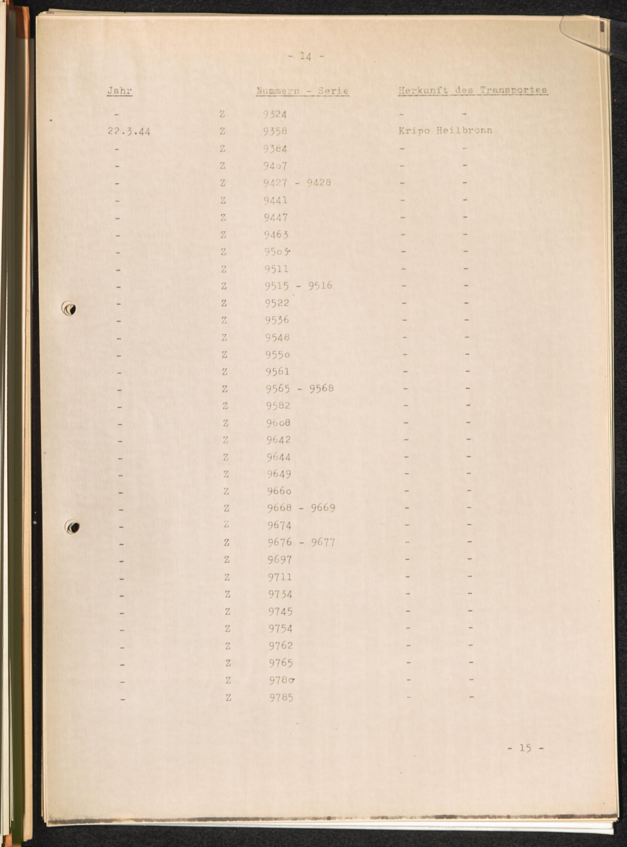Häftlingsnummernzuteilungen Z Zigeuner