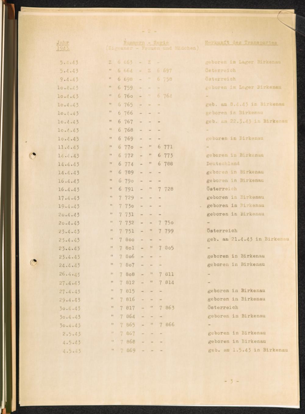 Häftlingsnummernzuteilungen Z Zigeuner