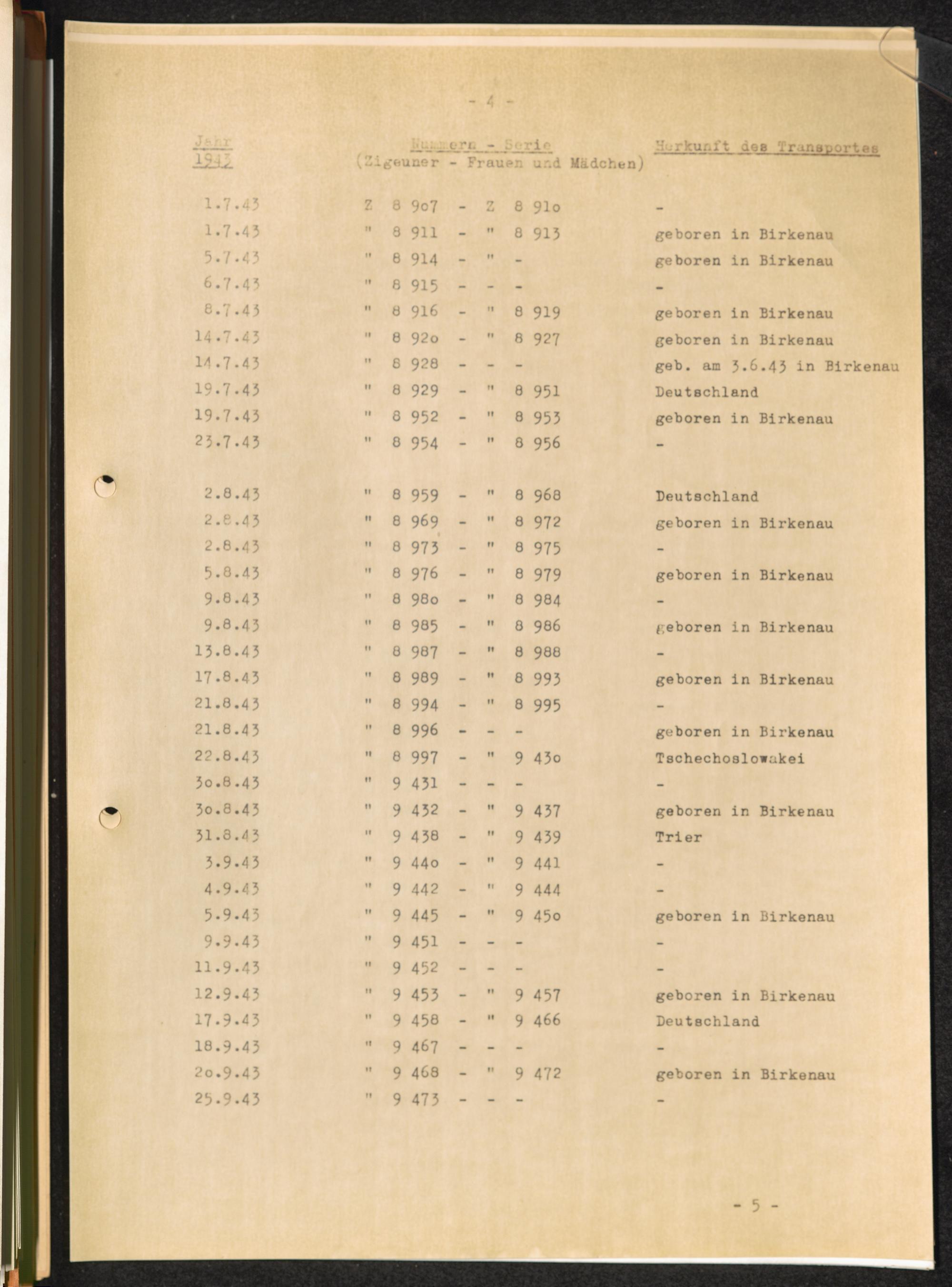 Häftlingsnummernzuteilungen Z Zigeuner