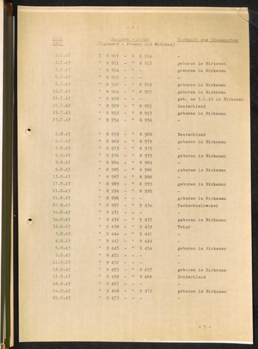 Häftlingsnummernzuteilungen / International Tracing Service (ITS)Transport-Übersichten (nach KL Au) / International Tracing Service (ITS)Häftlingsnummernverteilung in Konzentrationslagern / International Tracing Service (ITS)