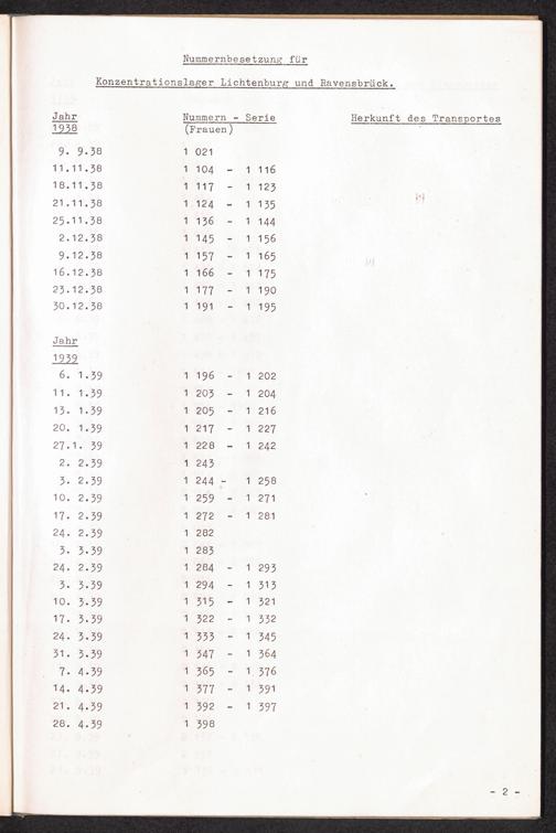 Nummernbesetzung für Konzentrationslager Lichtenburg und Ravensbrück / International Tracing Service