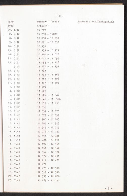 Nummernbesetzung für Konzentrationslager Lichtenburg und Ravensbrück / International Tracing Service