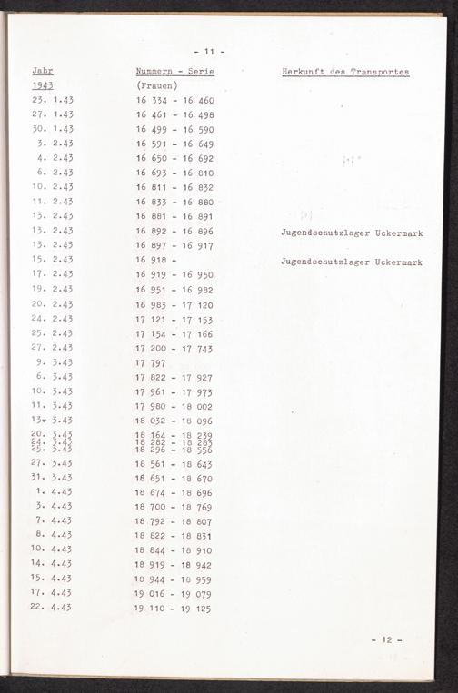 Nummernbesetzung für Konzentrationslager Lichtenburg und Ravensbrück / International Tracing Service