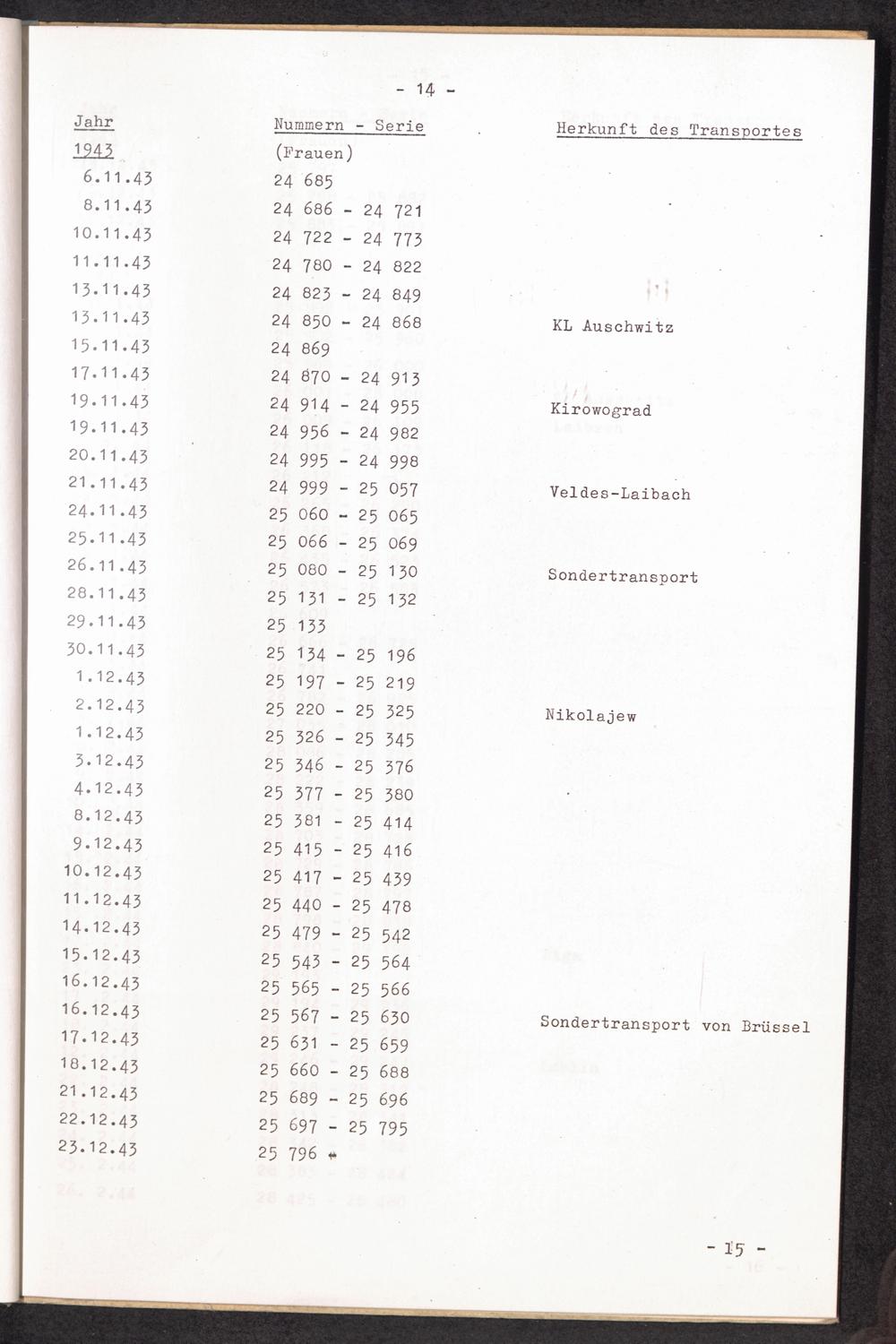 Nummernbesetzung für Konzentrationslager Lichtenburg und Ravensbrück / International Tracing Service