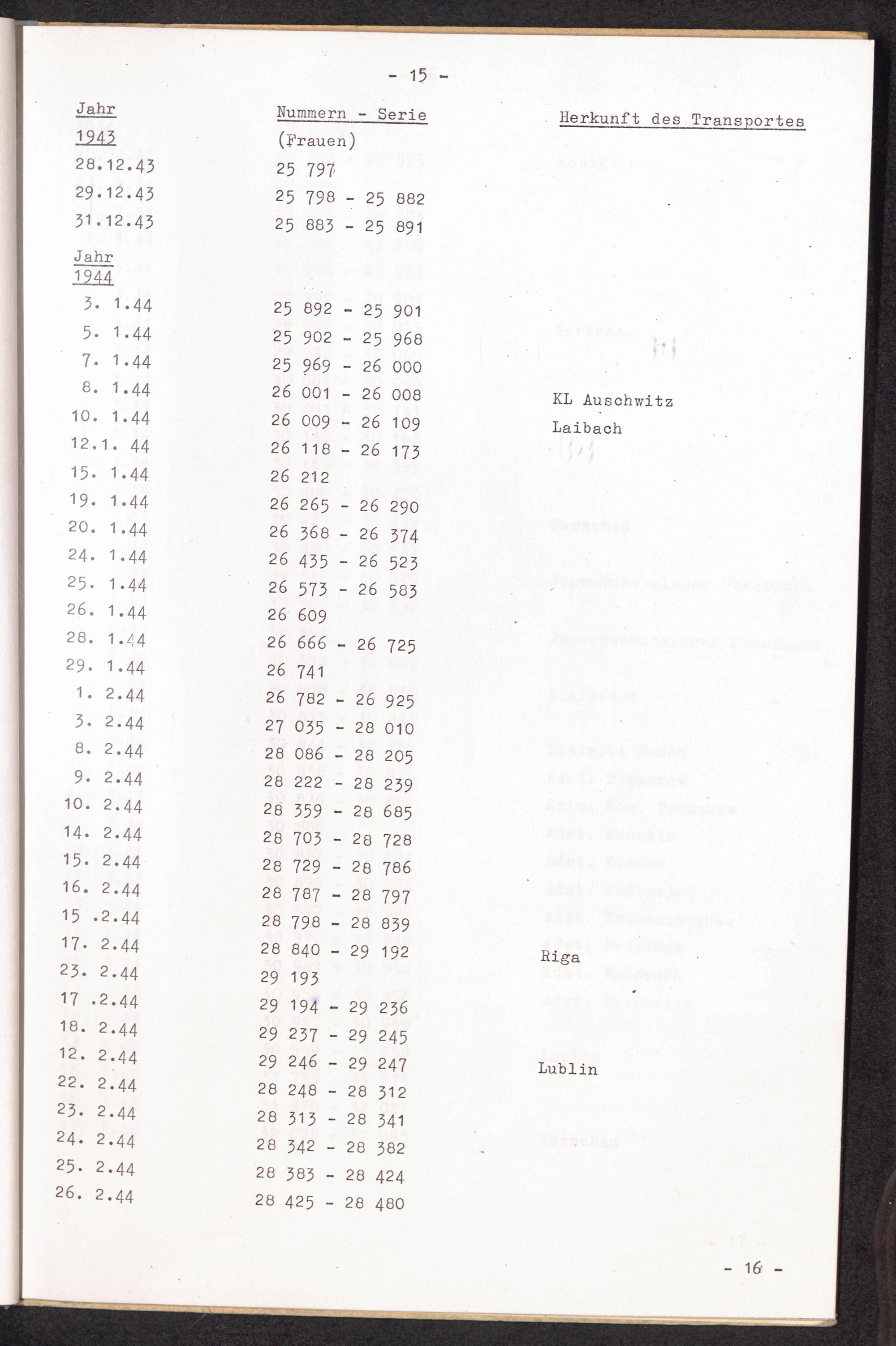 Nummernbesetzung für Konzentrationslager Lichtenburg und Ravensbrück / International Tracing Service