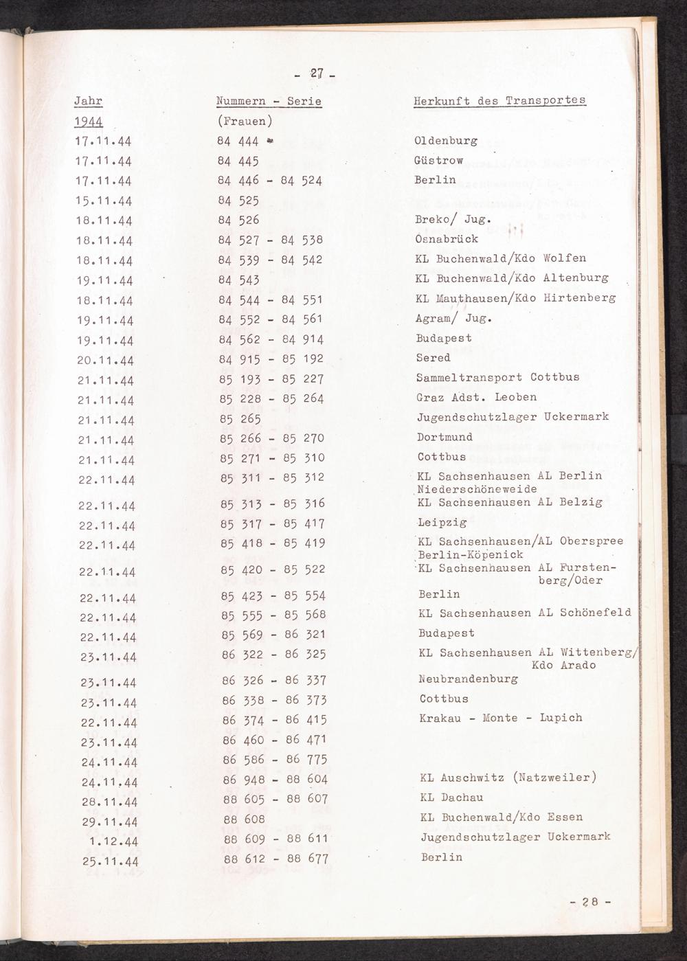 Nummernbesetzung für Konzentrationslager Lichtenburg und Ravensbrück / International Tracing Service