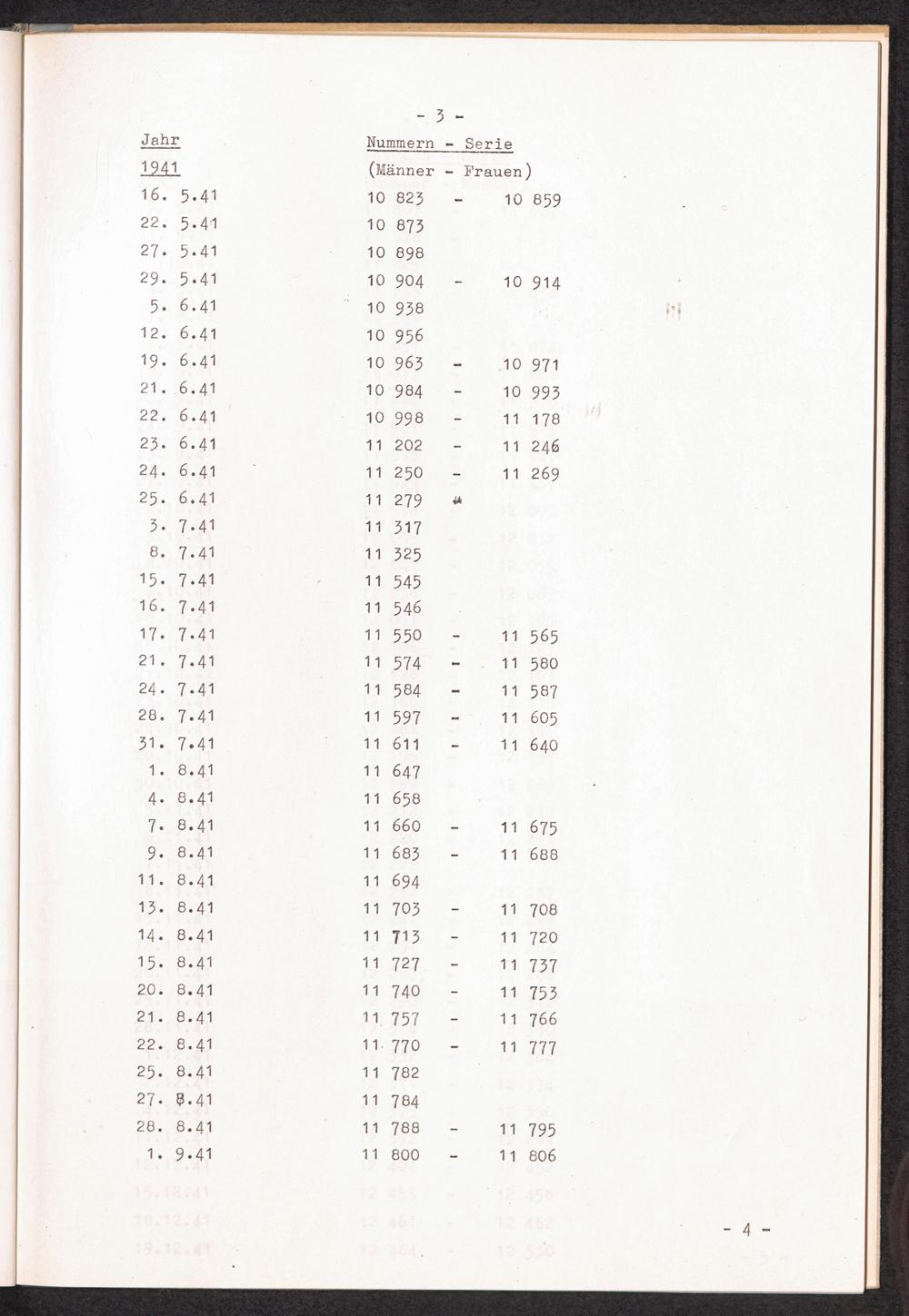 Nummernbesetzung für Konzentrationslager Stutthof / International Tracing Service