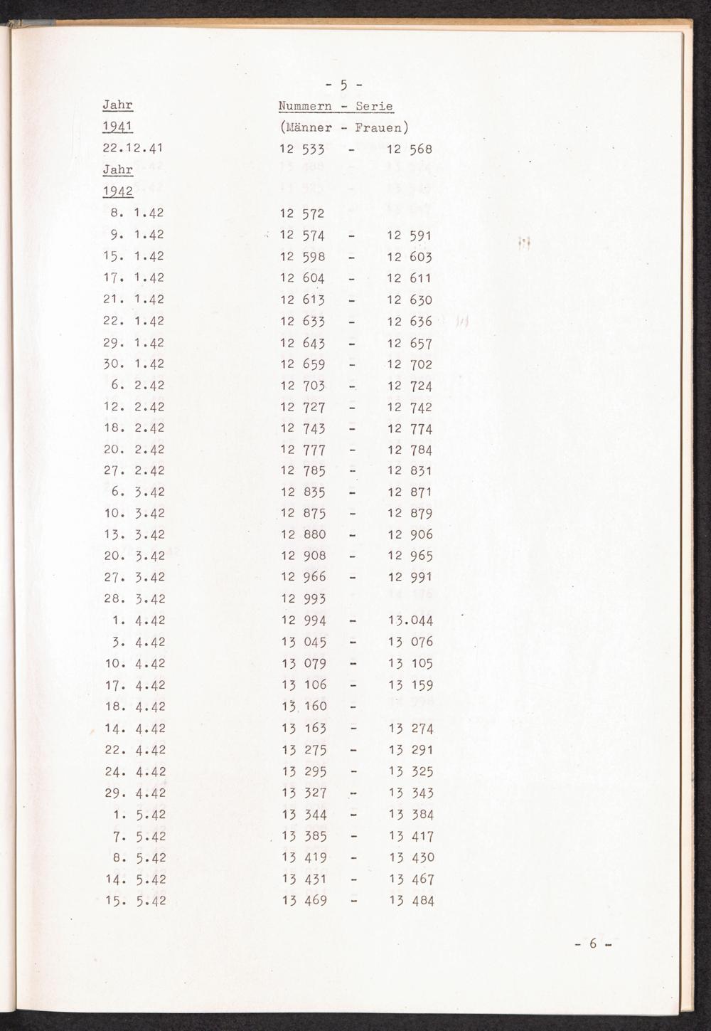 Nummernbesetzung für Konzentrationslager Stutthof / International Tracing Service
