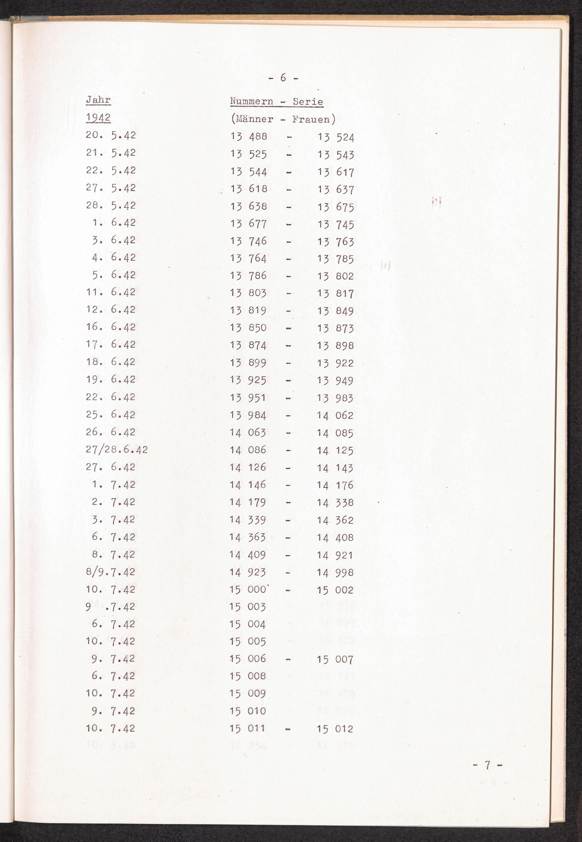 Nummernbesetzung für Konzentrationslager Stutthof / International Tracing Service