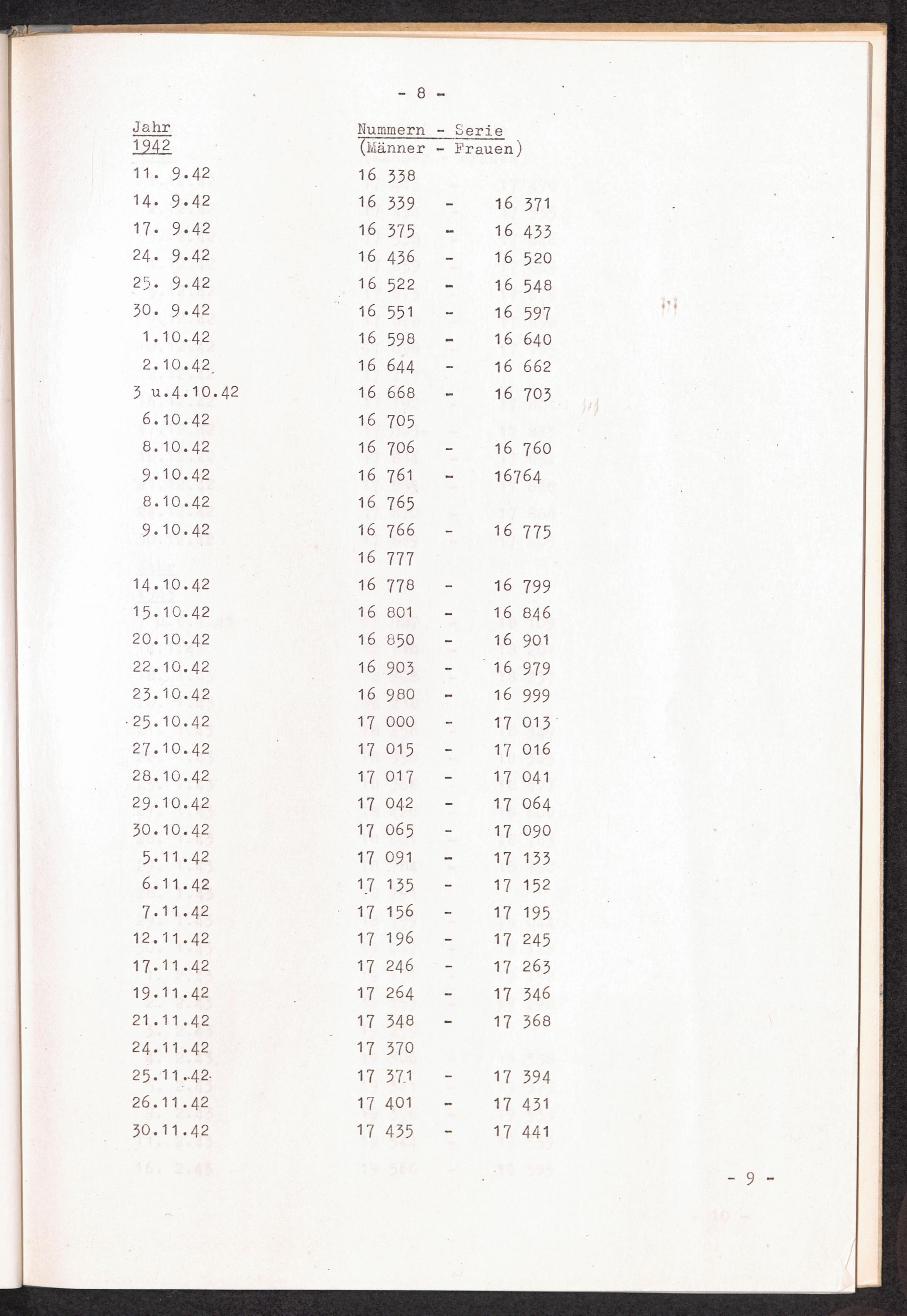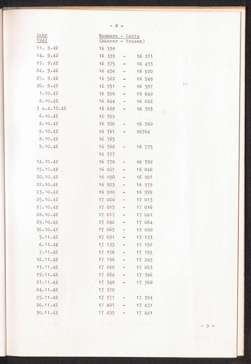 Nummernbesetzung für Konzentrationslager Stutthof / International Tracing Service