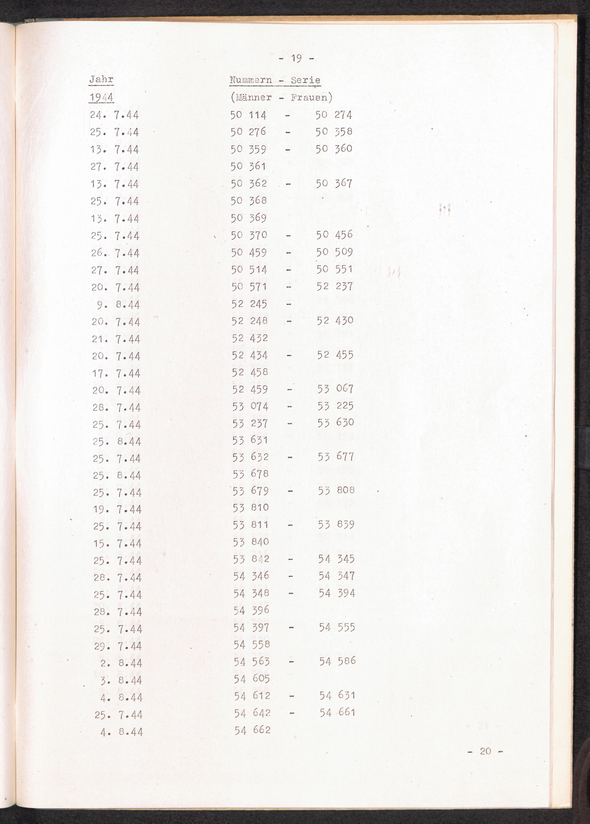 Nummernbesetzung für Konzentrationslager Stutthof / International Tracing Service