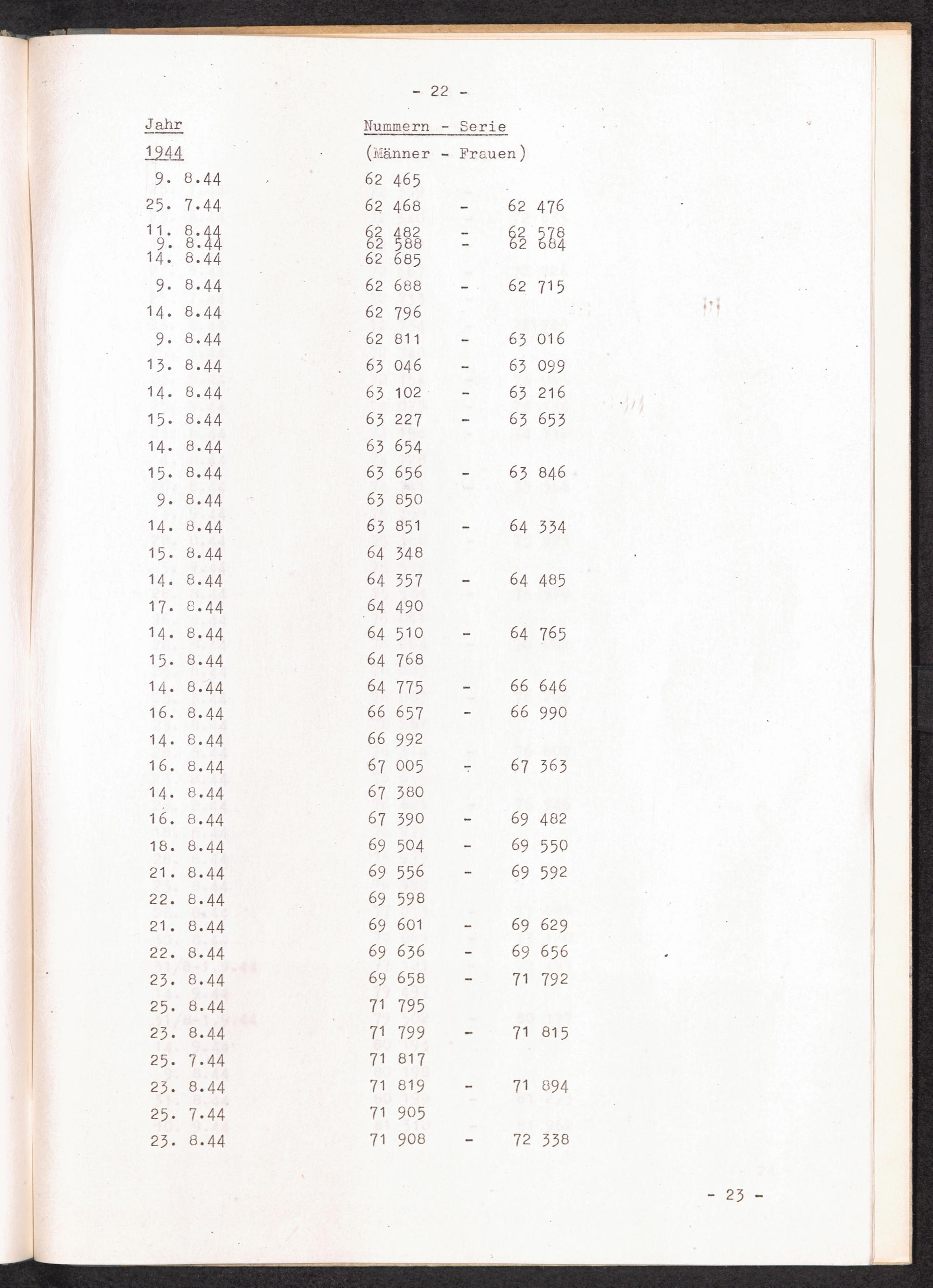 Nummernbesetzung für Konzentrationslager Stutthof / International Tracing Service