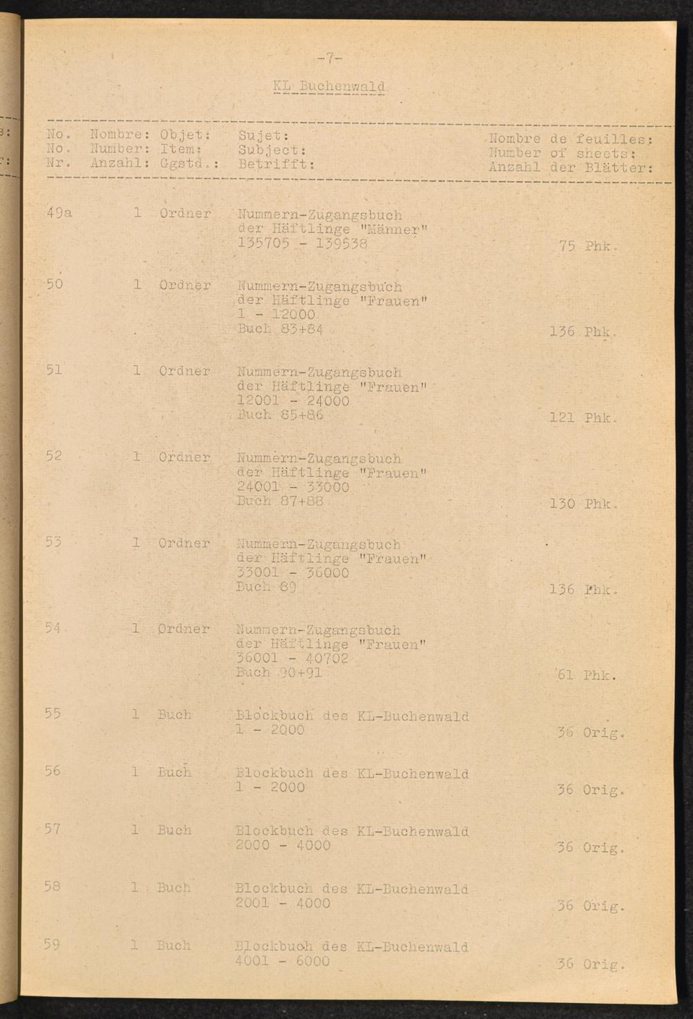 Inventar Konzentrations-Lager und Historische Abteilung (Teil 4) / International Tracing Service (ITS)Inventaire Camps De Concentration et Section Historique (4ème partie) / International Tracing Service (ITS)Inventory Concentration Camps and Historical Section (fourth part) / International Tracing Service (ITS)