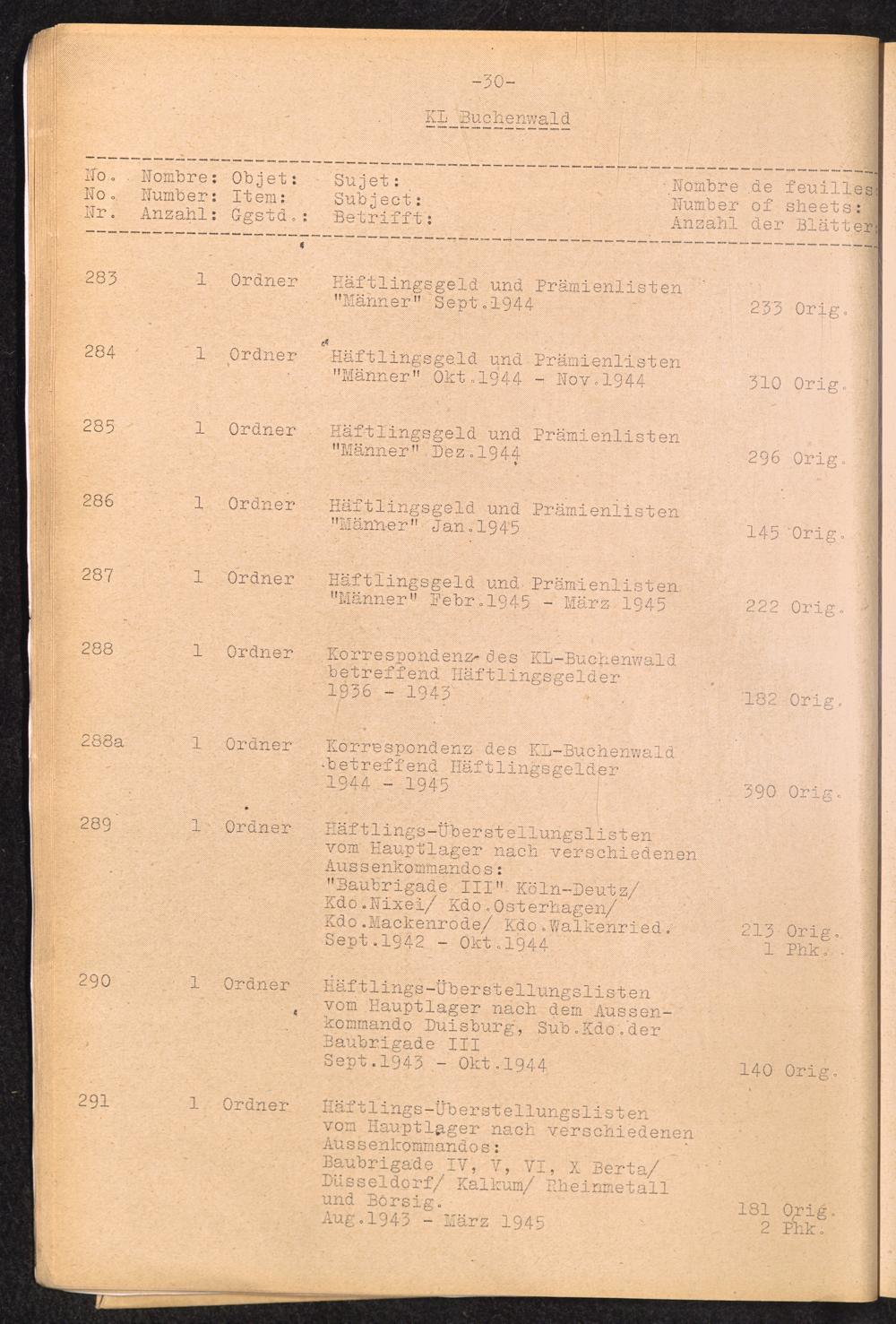 Inventar Konzentrations-Lager und Historische Abteilung (Teil 4) / International Tracing Service (ITS)Inventaire Camps De Concentration et Section Historique (4ème partie) / International Tracing Service (ITS)Inventory Concentration Camps and Historical Section (fourth part) / International Tracing Service (ITS)