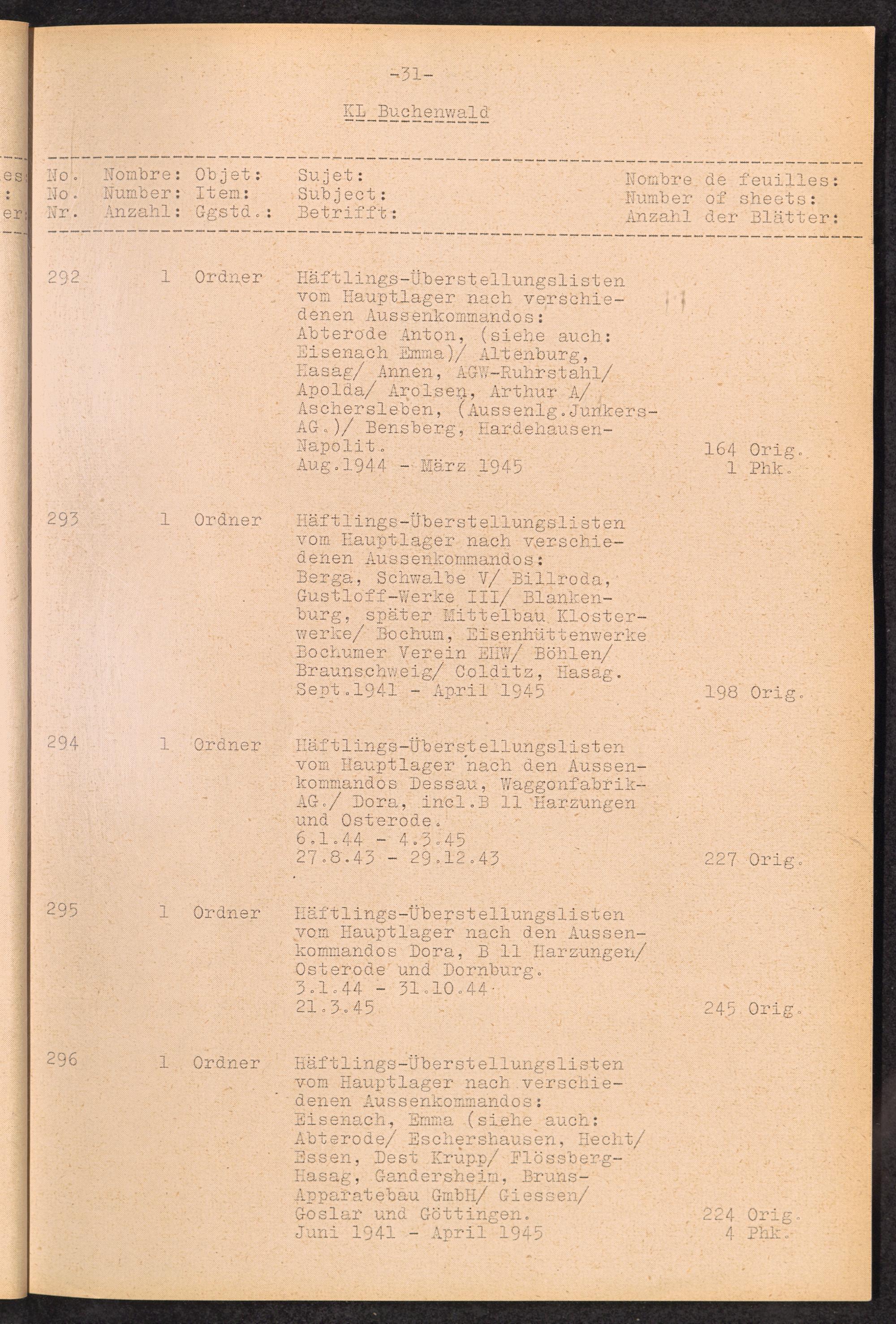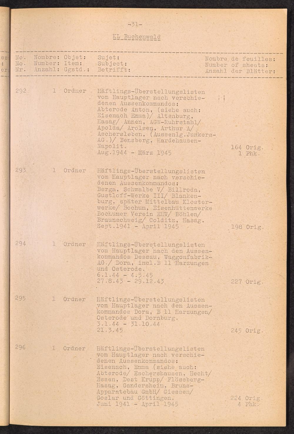 Inventar Konzentrations-Lager und Historische Abteilung (Teil 4) / International Tracing Service (ITS)Inventaire Camps De Concentration et Section Historique (4ème partie) / International Tracing Service (ITS)Inventory Concentration Camps and Historical Section (fourth part) / International Tracing Service (ITS)