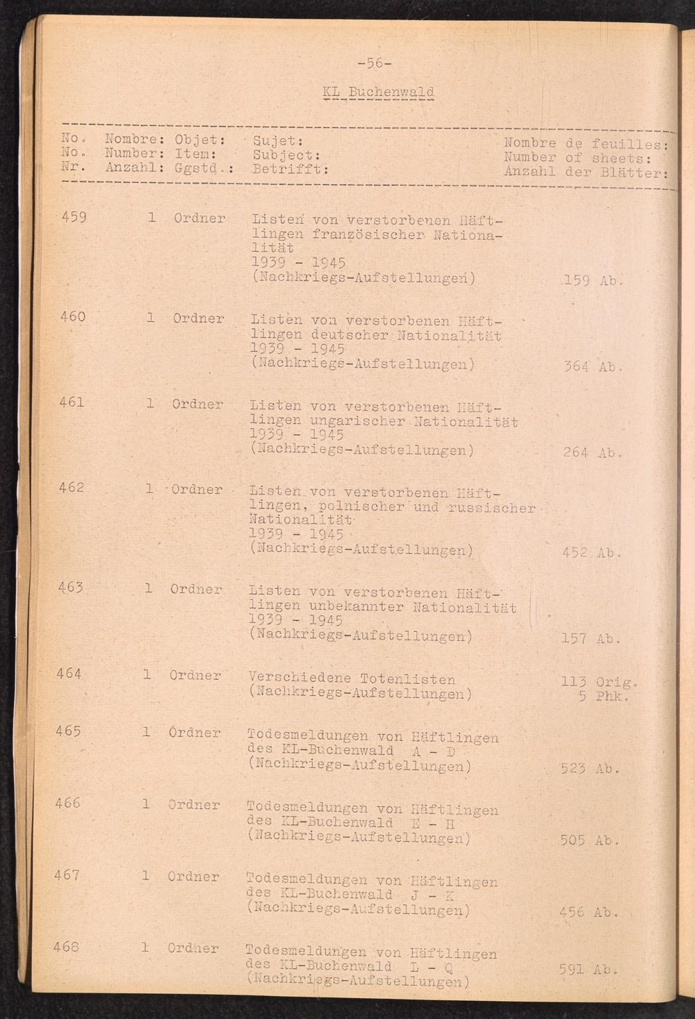 Inventar Konzentrations-Lager und Historische Abteilung (Teil 4) / International Tracing Service (ITS)Inventaire Camps De Concentration et Section Historique (4ème partie) / International Tracing Service (ITS)Inventory Concentration Camps and Historical Section (fourth part) / International Tracing Service (ITS)