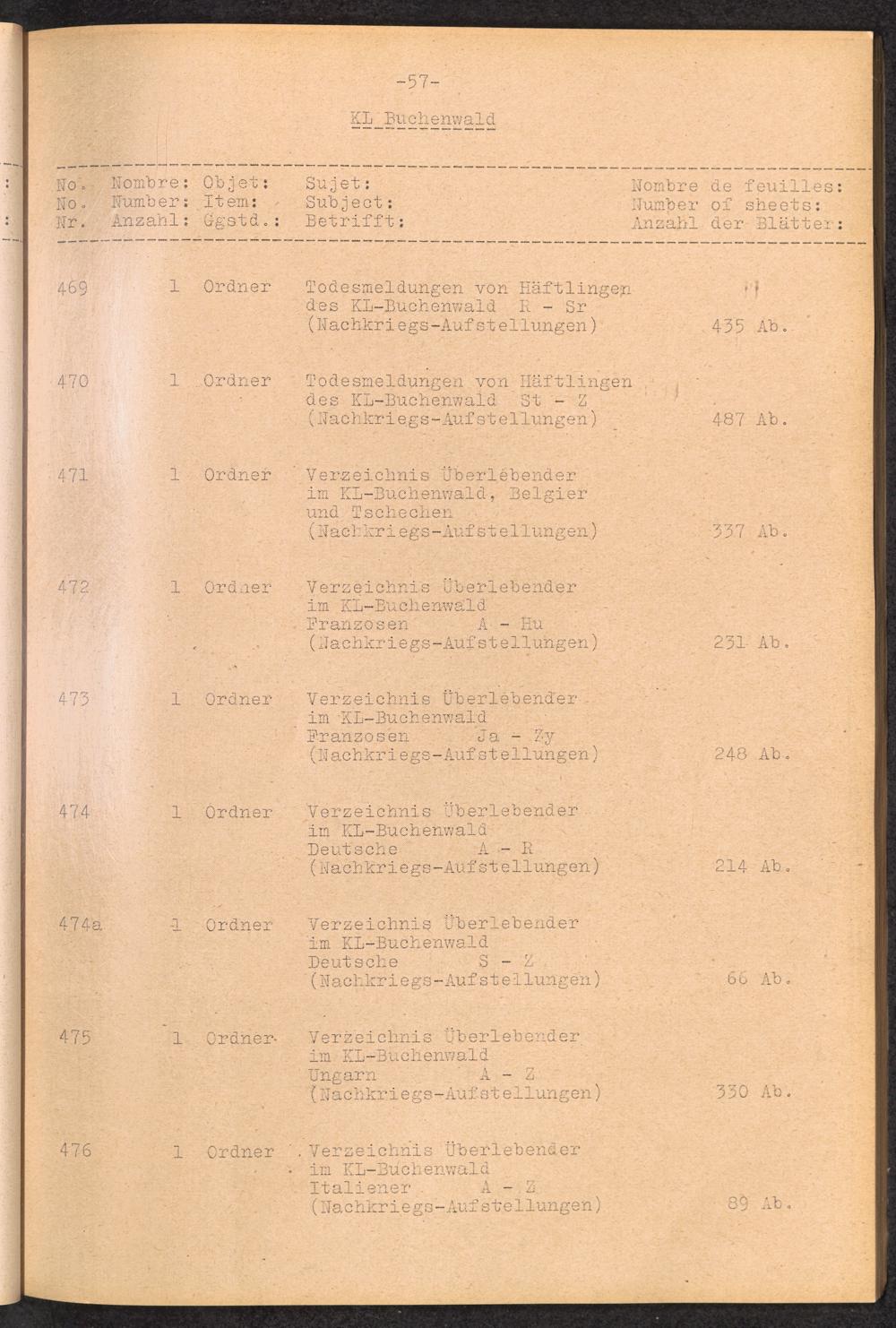 Inventar Konzentrations-Lager und Historische Abteilung (Teil 4) / International Tracing Service (ITS)Inventaire Camps De Concentration et Section Historique (4ème partie) / International Tracing Service (ITS)Inventory Concentration Camps and Historical Section (fourth part) / International Tracing Service (ITS)