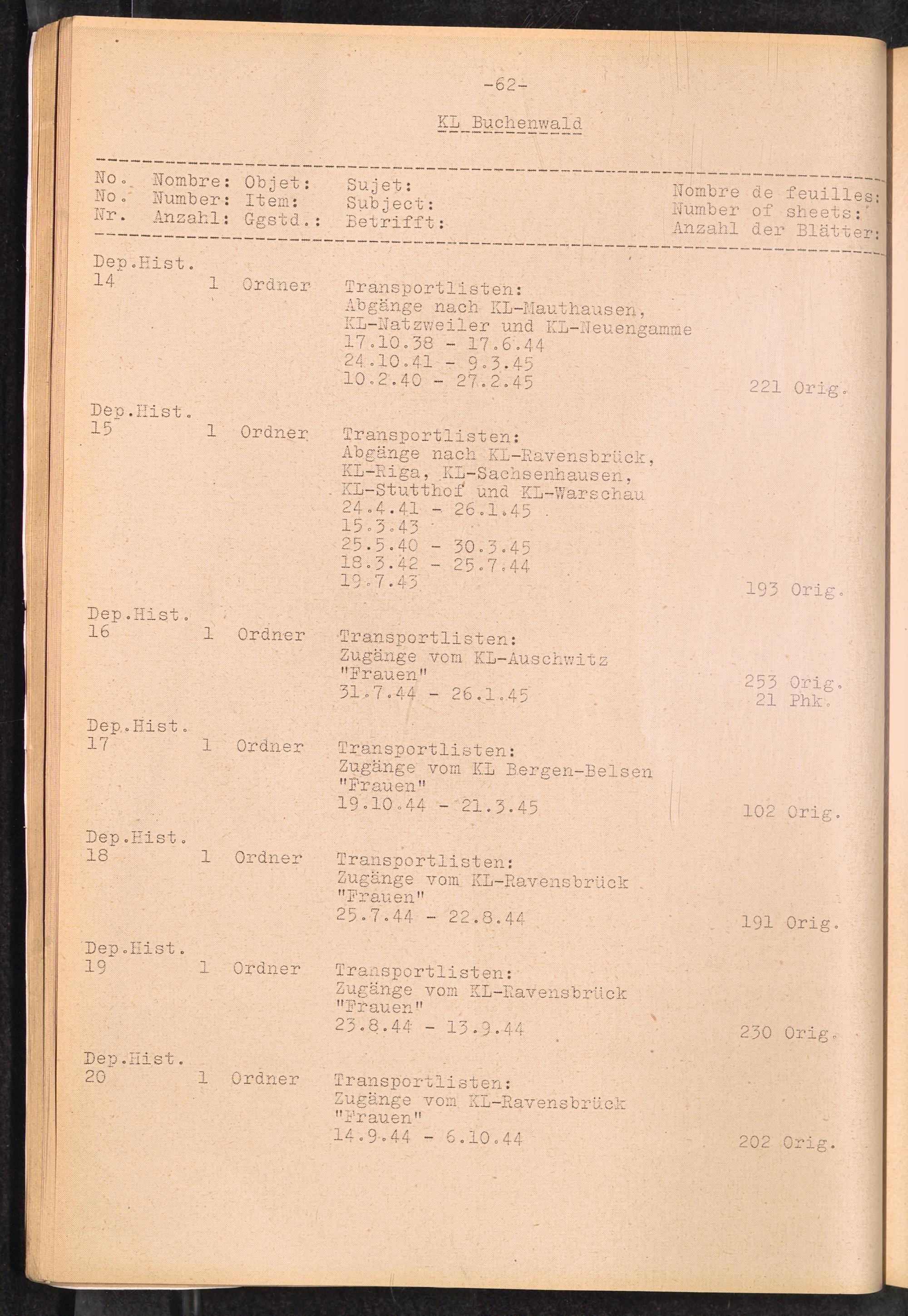Inventar Konzentrations-Lager und Historische Abteilung (Teil 4) / International Tracing Service (ITS)Inventaire Camps De Concentration et Section Historique (4ème partie) / International Tracing Service (ITS)Inventory Concentration Camps and Historical Section (fourth part) / International Tracing Service (ITS)