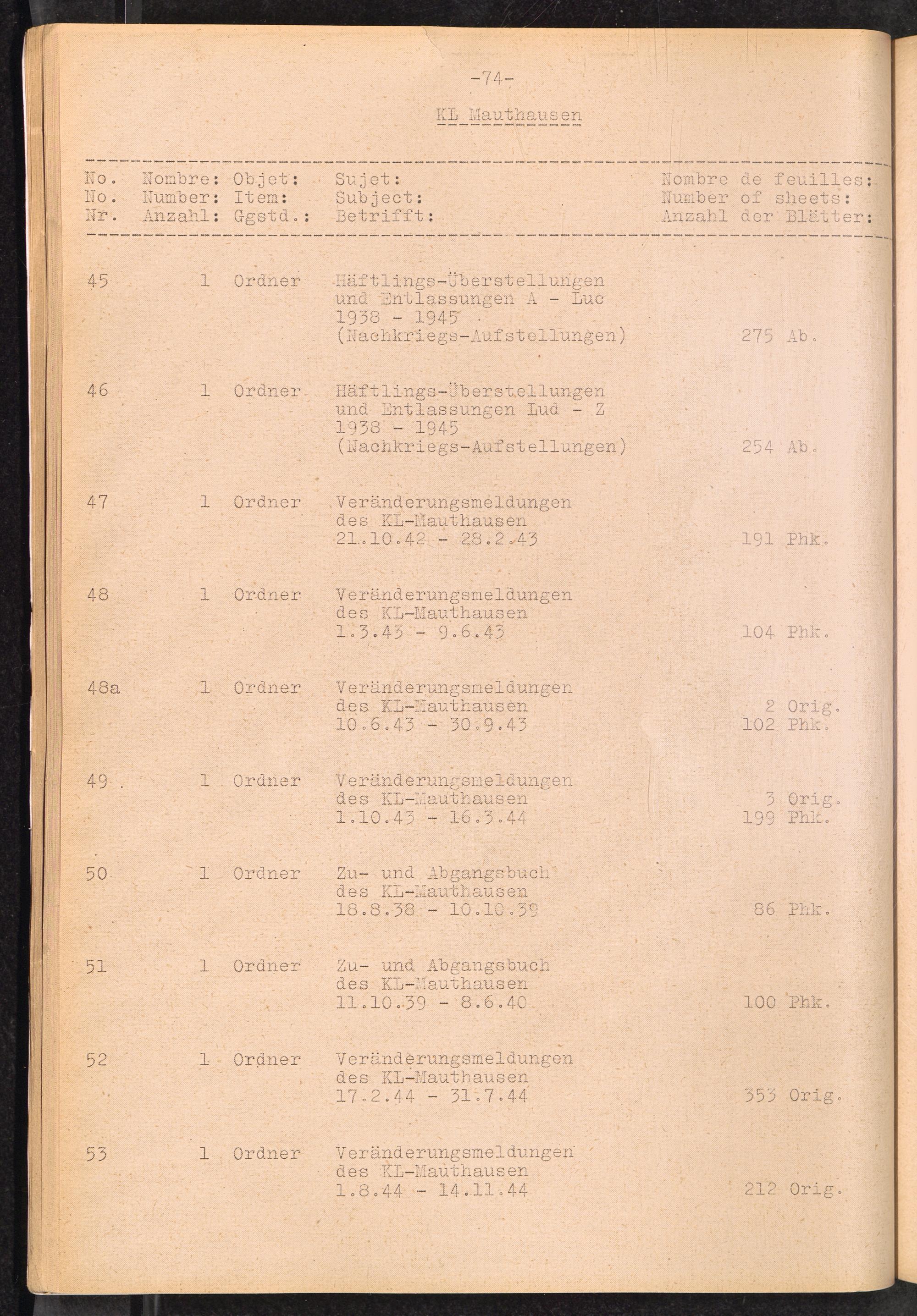 Inventar Konzentrations-Lager und Historische Abteilung (Teil 4) / International Tracing Service (ITS)Inventaire Camps De Concentration et Section Historique (4ème partie) / International Tracing Service (ITS)Inventory Concentration Camps and Historical Section (fourth part) / International Tracing Service (ITS)