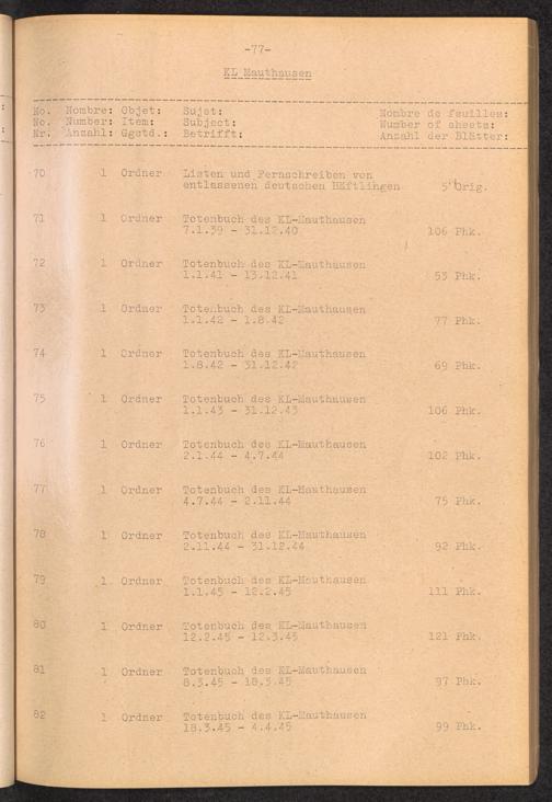 Inventar Konzentrations-Lager und Historische Abteilung (Teil 4) / International Tracing Service (ITS)Inventaire Camps De Concentration et Section Historique (4ème partie) / International Tracing Service (ITS)Inventory Concentration Camps and Historical Section (fourth part) / International Tracing Service (ITS)