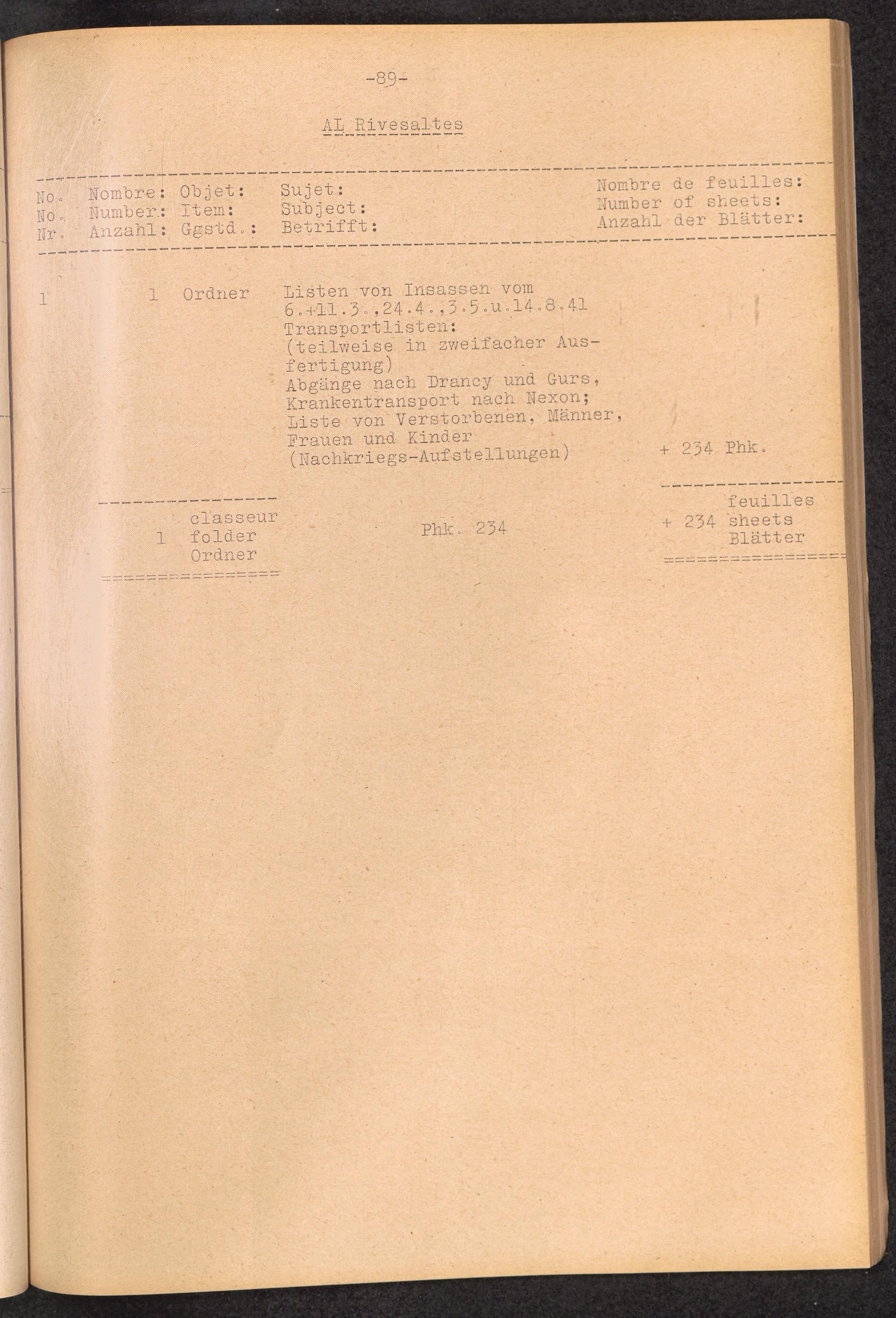Inventar Konzentrations-Lager und Historische Abteilung (Teil 4) / International Tracing Service (ITS)Inventaire Camps De Concentration et Section Historique (4ème partie) / International Tracing Service (ITS)Inventory Concentration Camps and Historical Section (fourth part) / International Tracing Service (ITS)