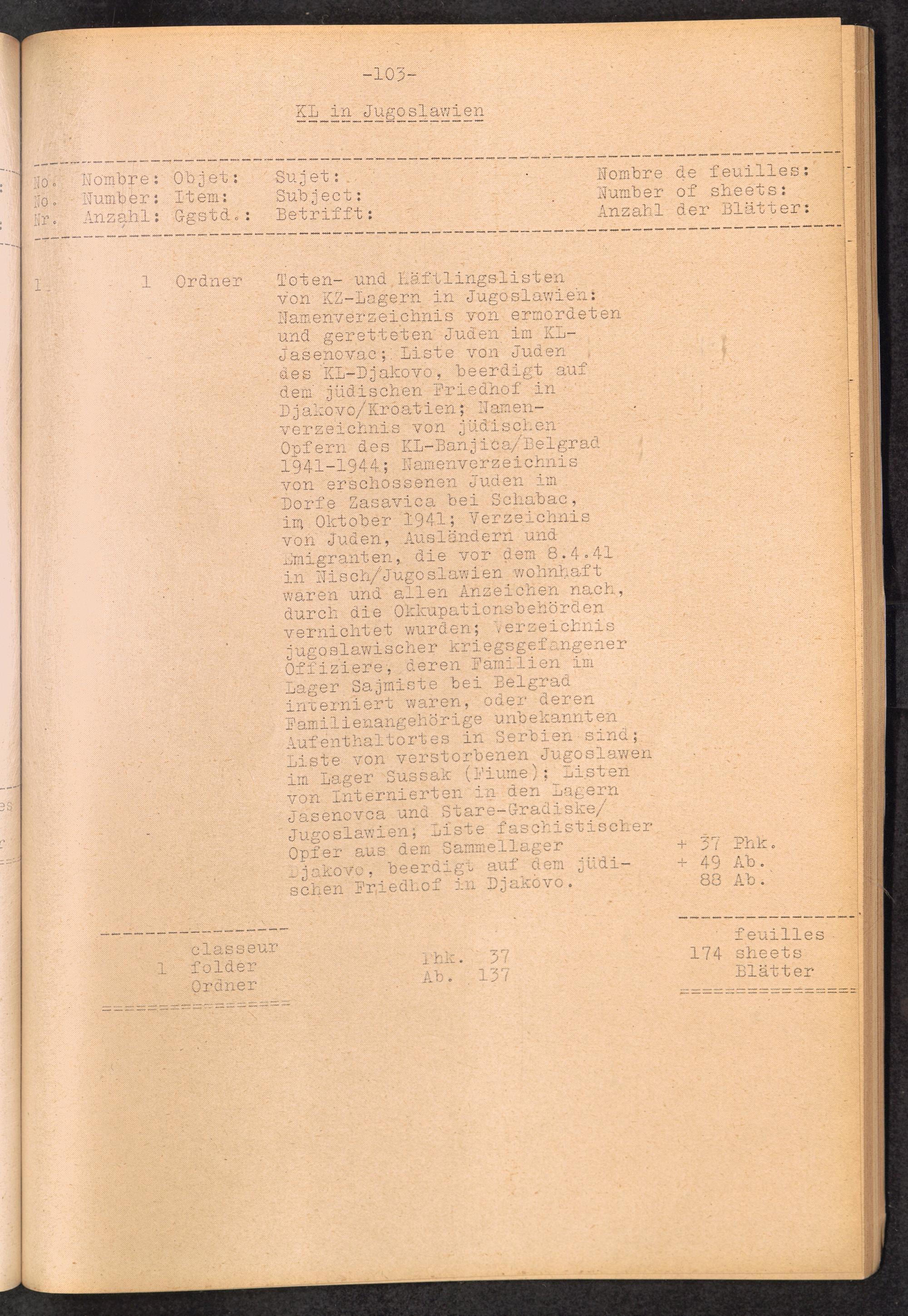 Inventar Konzentrations-Lager und Historische Abteilung (Teil 4) / International Tracing Service (ITS)Inventaire Camps De Concentration et Section Historique (4ème partie) / International Tracing Service (ITS)Inventory Concentration Camps and Historical Section (fourth part) / International Tracing Service (ITS)
