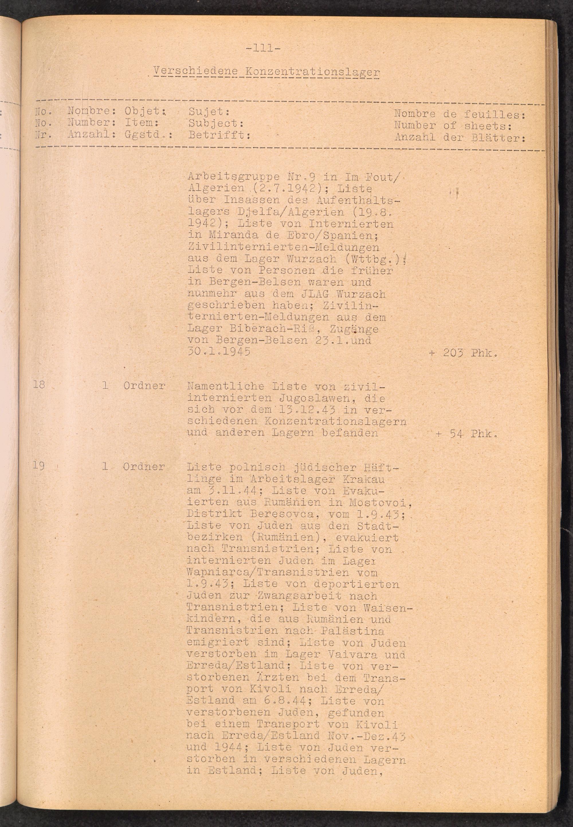 Inventar Konzentrations-Lager und Historische Abteilung (Teil 4) / International Tracing Service (ITS)Inventaire Camps De Concentration et Section Historique (4ème partie) / International Tracing Service (ITS)Inventory Concentration Camps and Historical Section (fourth part) / International Tracing Service (ITS)
