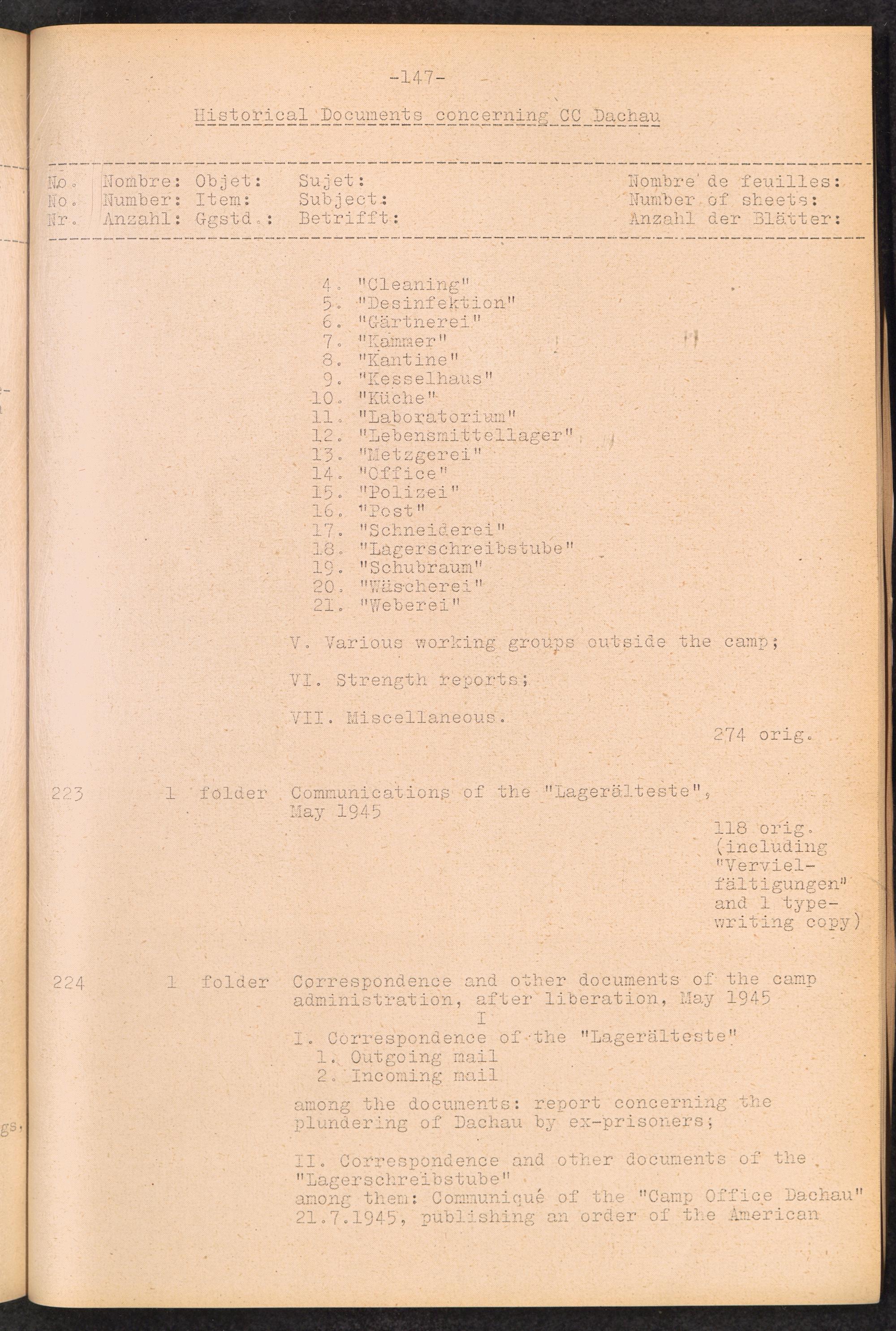 Inventar Konzentrations-Lager und Historische Abteilung (Teil 4) / International Tracing Service (ITS)Inventaire Camps De Concentration et Section Historique (4ème partie) / International Tracing Service (ITS)Inventory Concentration Camps and Historical Section (fourth part) / International Tracing Service (ITS)