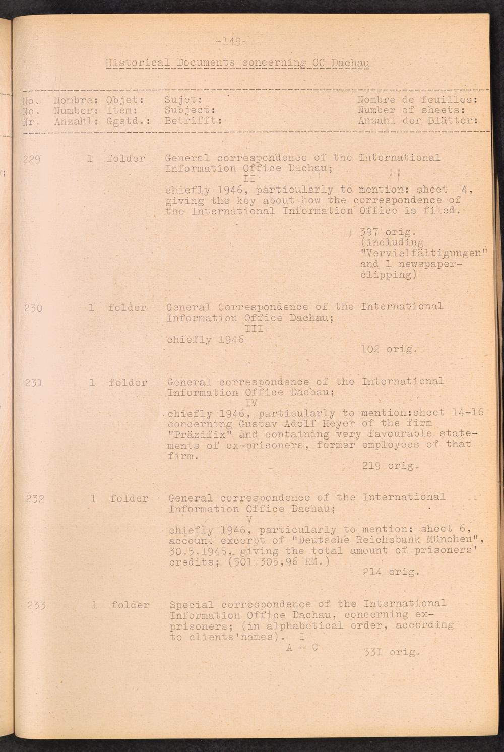 Inventar Konzentrations-Lager und Historische Abteilung (Teil 4) / International Tracing Service (ITS)Inventaire Camps De Concentration et Section Historique (4ème partie) / International Tracing Service (ITS)Inventory Concentration Camps and Historical Section (fourth part) / International Tracing Service (ITS)