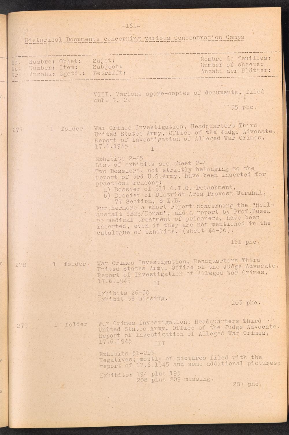 Inventar Konzentrations-Lager und Historische Abteilung (Teil 4) / International Tracing Service (ITS)Inventaire Camps De Concentration et Section Historique (4ème partie) / International Tracing Service (ITS)Inventory Concentration Camps and Historical Section (fourth part) / International Tracing Service (ITS)