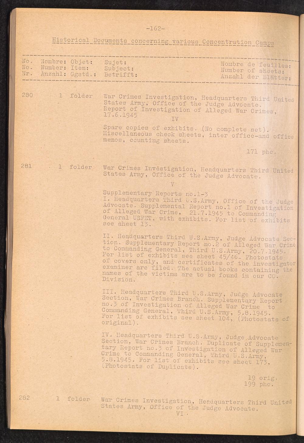 Inventar Konzentrations-Lager und Historische Abteilung (Teil 4) / International Tracing Service (ITS)Inventaire Camps De Concentration et Section Historique (4ème partie) / International Tracing Service (ITS)Inventory Concentration Camps and Historical Section (fourth part) / International Tracing Service (ITS)