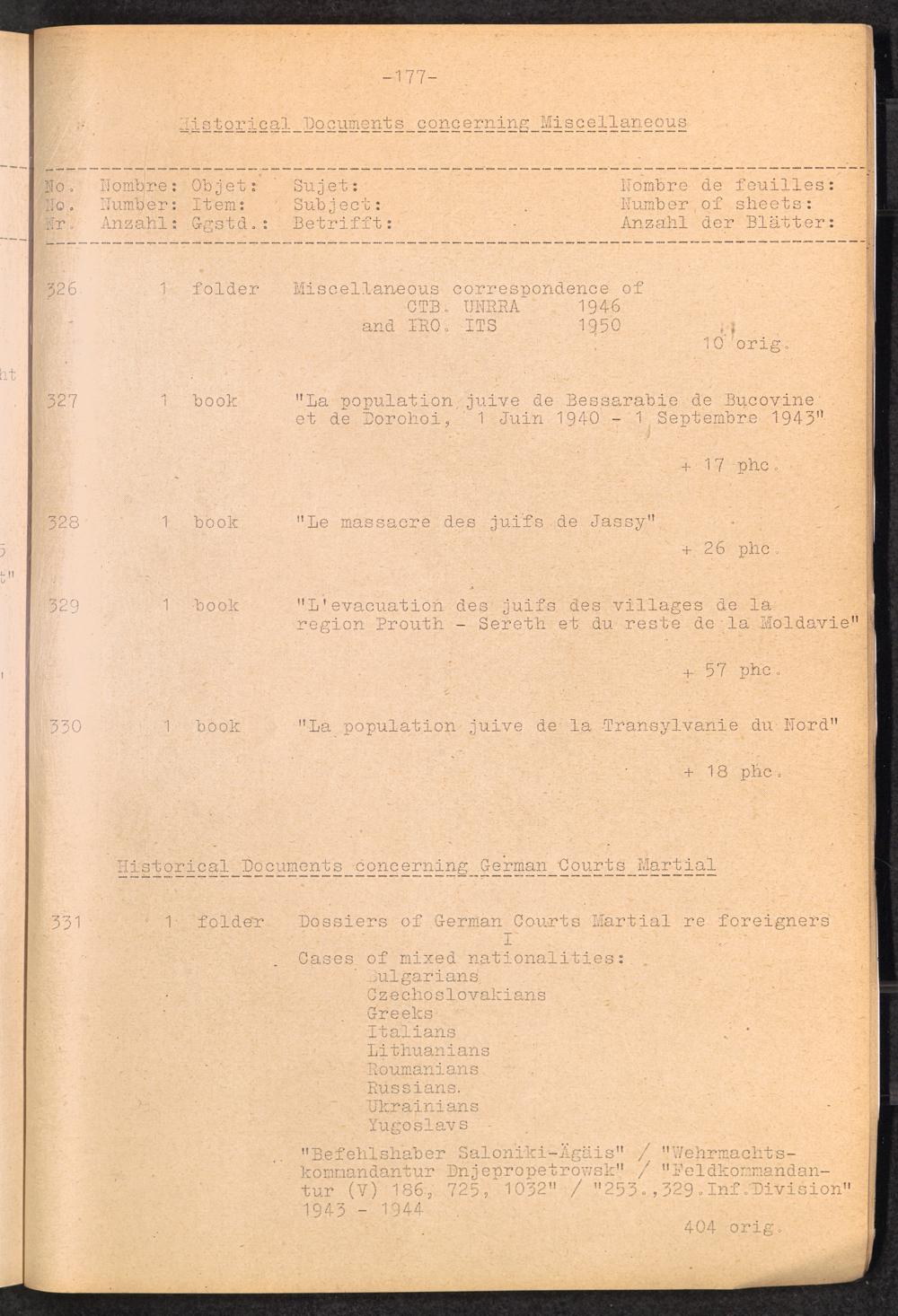 Inventar Konzentrations-Lager und Historische Abteilung (Teil 4) / International Tracing Service (ITS)Inventaire Camps De Concentration et Section Historique (4ème partie) / International Tracing Service (ITS)Inventory Concentration Camps and Historical Section (fourth part) / International Tracing Service (ITS)