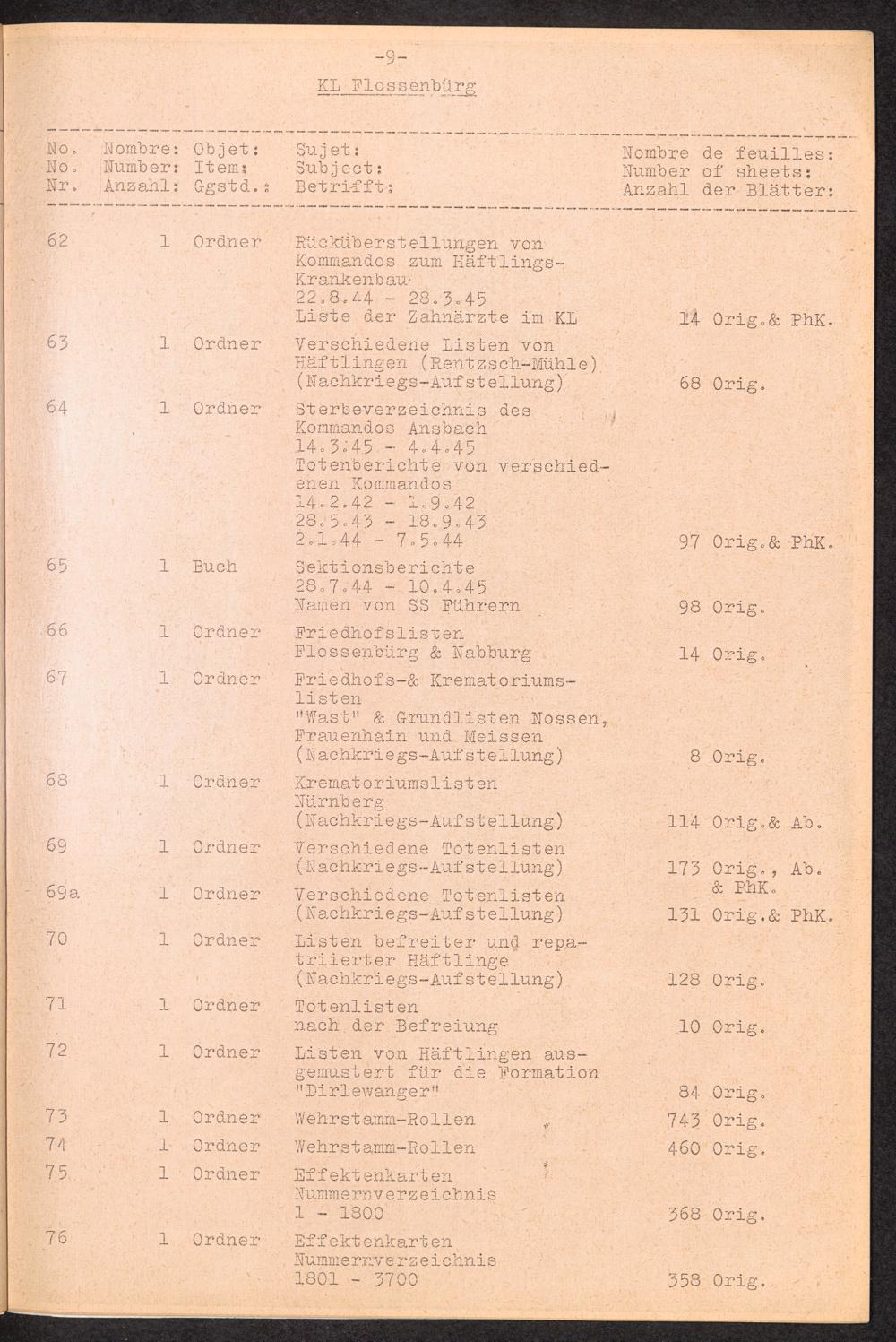 Inventar Konzentrations-Lager (Teil 1) / International Tracing Service (ITS)Inventaire Camps De Concentration et Section Historique (1ère partie) / International Tracing Service (ITS)Inventory Concentration Camps and Historical Section (first part) / International Tracing Service (ITS)