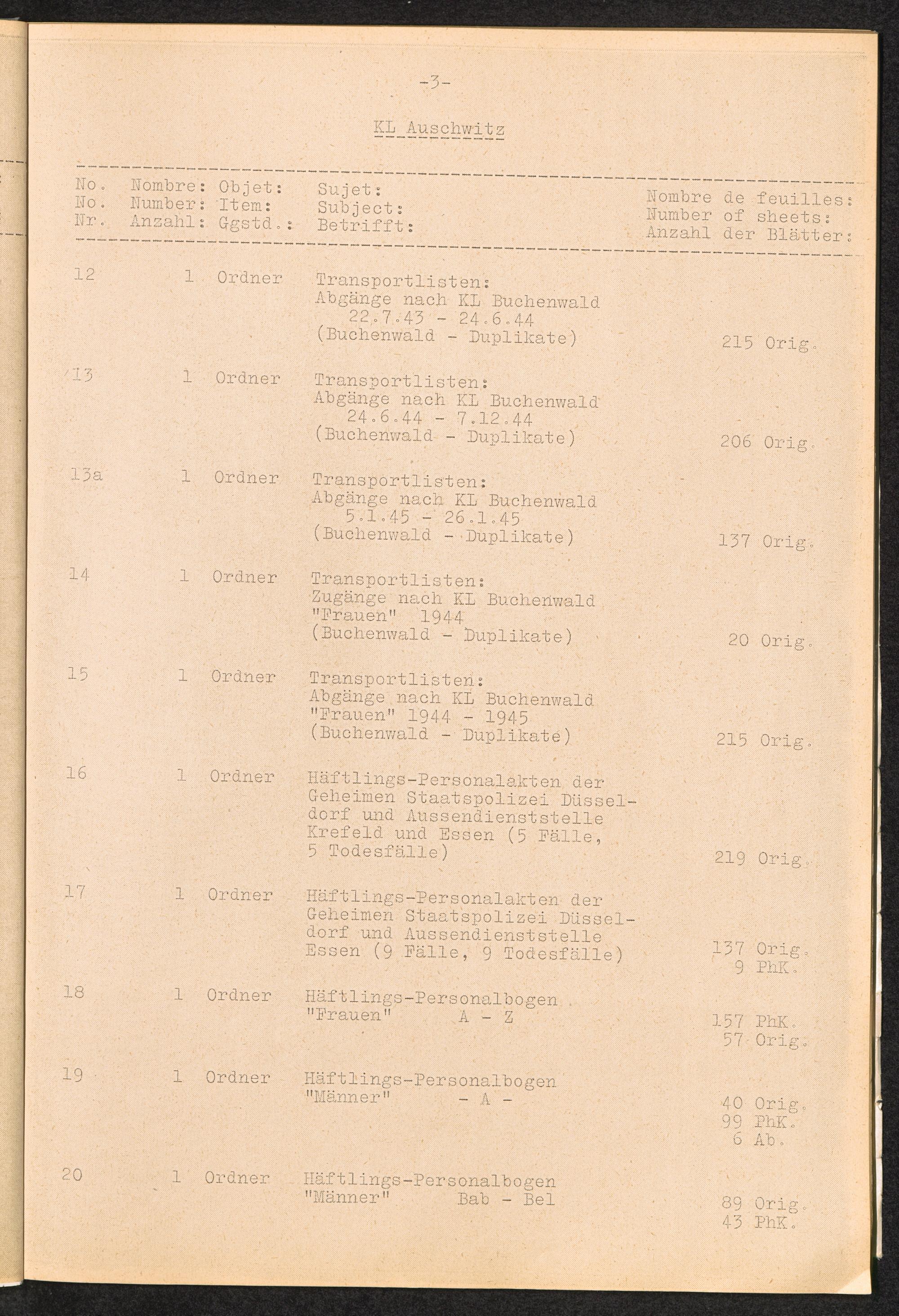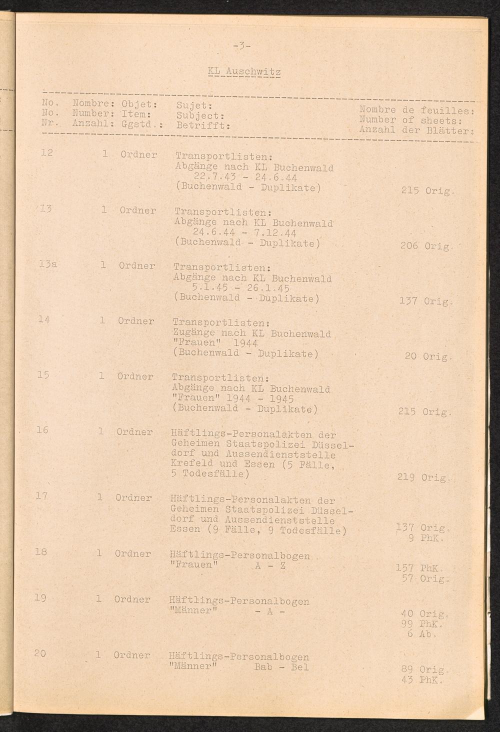 Inventar Konzentrations-Lager und Historische Abteilung (Teil 3) / International Tracing Service (ITS)Inventaire Camps De Concentration et Section Historique (3ème partie) / International Tracing Service (ITS)Inventory Concentration Camps and Historical Section (third part) / International Tracing Service (ITS)