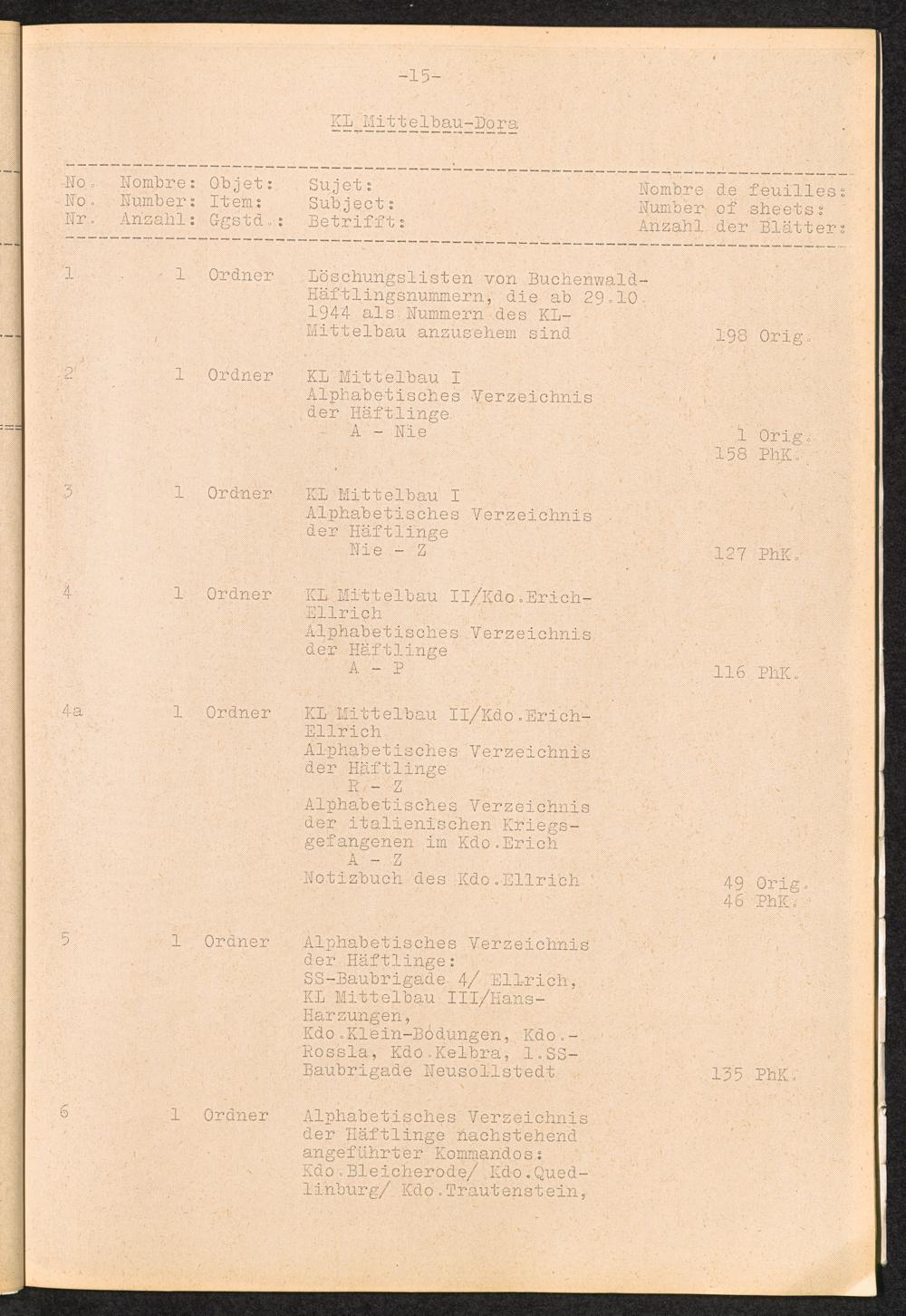 Inventar Konzentrations-Lager und Historische Abteilung (Teil 3) / International Tracing Service (ITS)Inventaire Camps De Concentration et Section Historique (3ème partie) / International Tracing Service (ITS)Inventory Concentration Camps and Historical Section (third part) / International Tracing Service (ITS)
