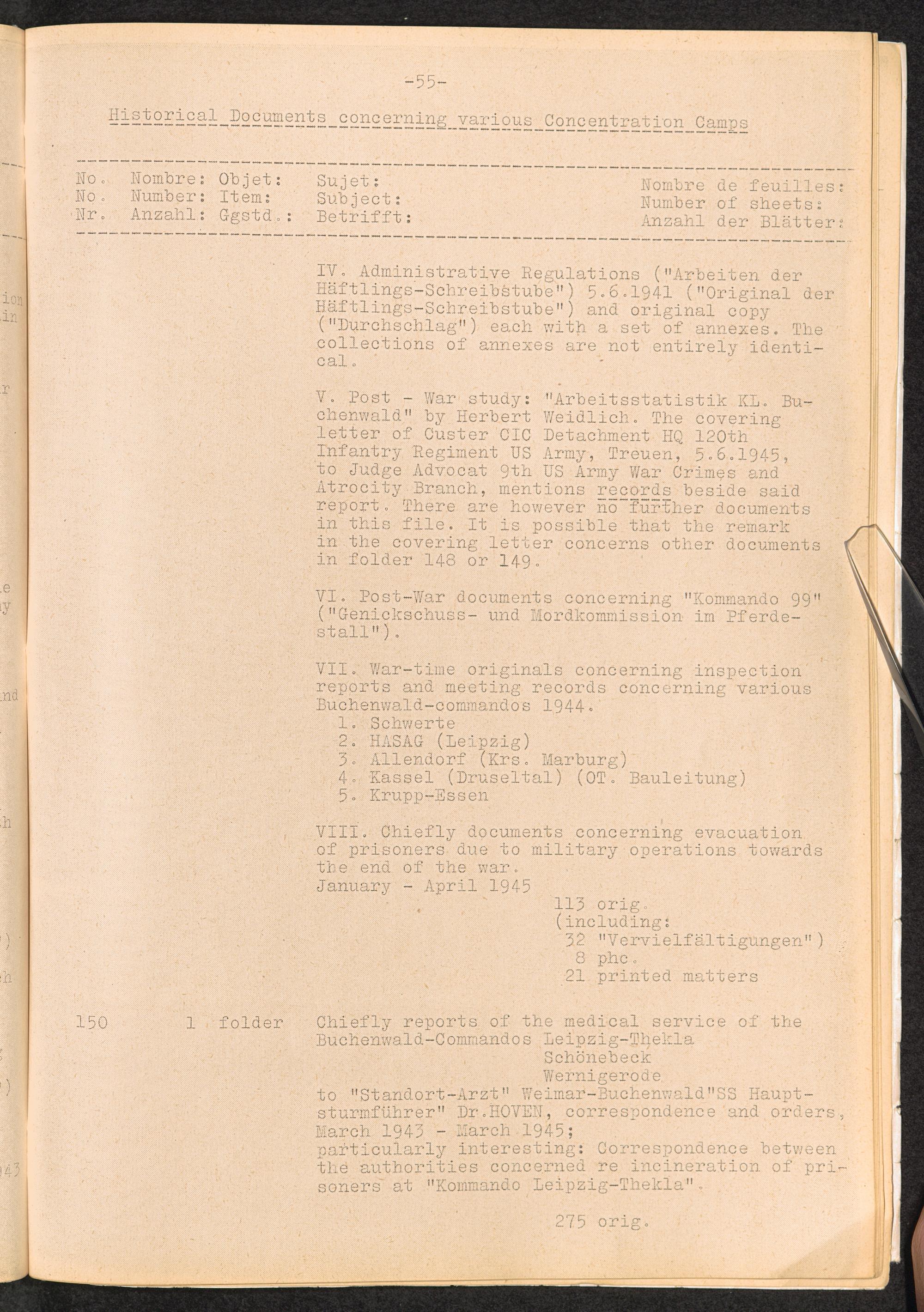 Inventar Konzentrations-Lager und Historische Abteilung (Teil 3) / International Tracing Service (ITS)Inventaire Camps De Concentration et Section Historique (3ème partie) / International Tracing Service (ITS)Inventory Concentration Camps and Historical Section (third part) / International Tracing Service (ITS)