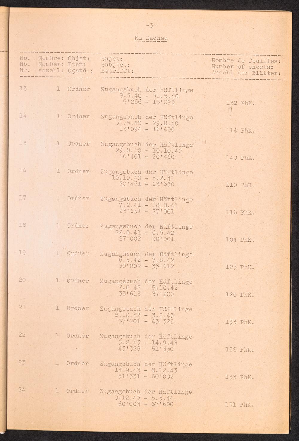 Inventar Konzentrations-Lager und Historische Abteilung (Teil 2) KL Dachau