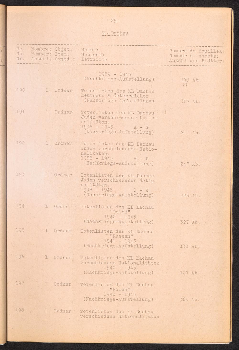 Inventar Konzentrations-Lager und Historische Abteilung (Teil 2) / International Tracing Service (ITS)Inventaire Camps De Concentration et Section Historique (2ème partie) / International Tracing Service (ITS)Inventory Concentration Camps and Historical Section (second part) / International Tracing Service (ITS)