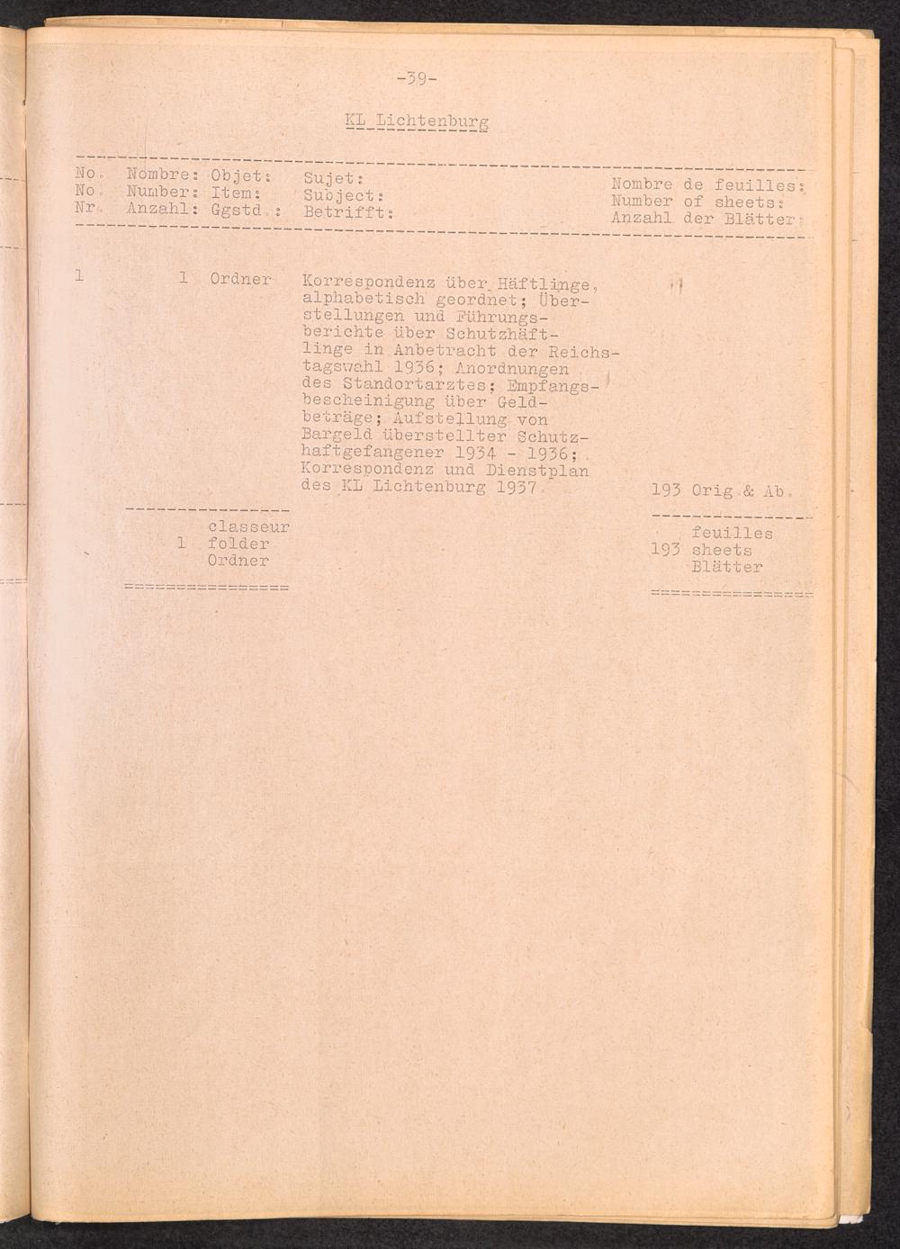 Inventar Konzentrations-Lager und Historische Abteilung (Teil 2) / International Tracing Service (ITS)Inventaire Camps De Concentration et Section Historique (2ème partie) / International Tracing Service (ITS)Inventory Concentration Camps and Historical Section (second part) / International Tracing Service (ITS)