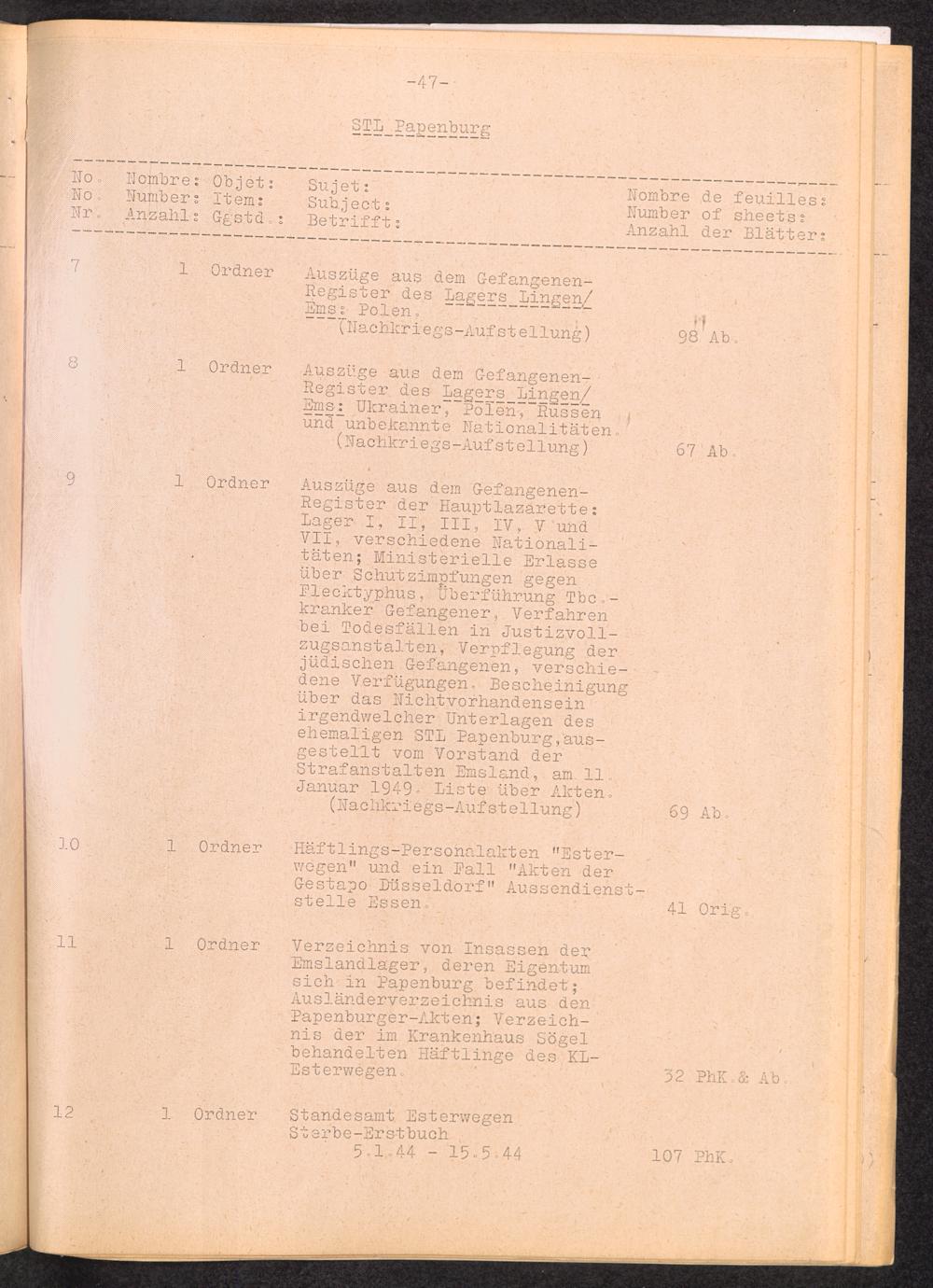 Inventar Konzentrations-Lager und Historische Abteilung (Teil 2) / International Tracing Service (ITS)Inventaire Camps De Concentration et Section Historique (2ème partie) / International Tracing Service (ITS)Inventory Concentration Camps and Historical Section (second part) / International Tracing Service (ITS)