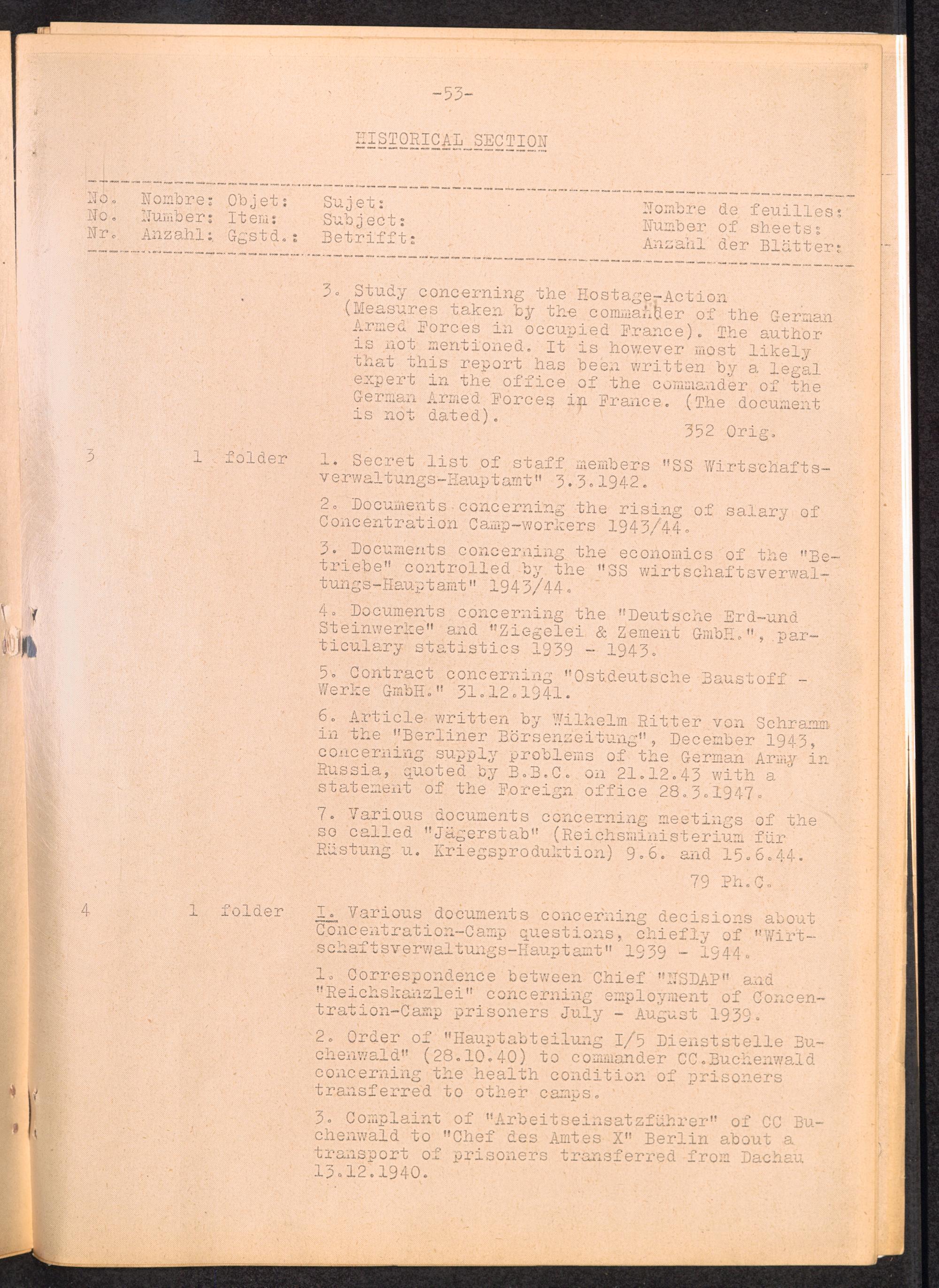 Inventar Konzentrations-Lager und Historische Abteilung (Teil 2) / International Tracing Service (ITS)Inventaire Camps De Concentration et Section Historique (2ème partie) / International Tracing Service (ITS)Inventory Concentration Camps and Historical Section (second part) / International Tracing Service (ITS)