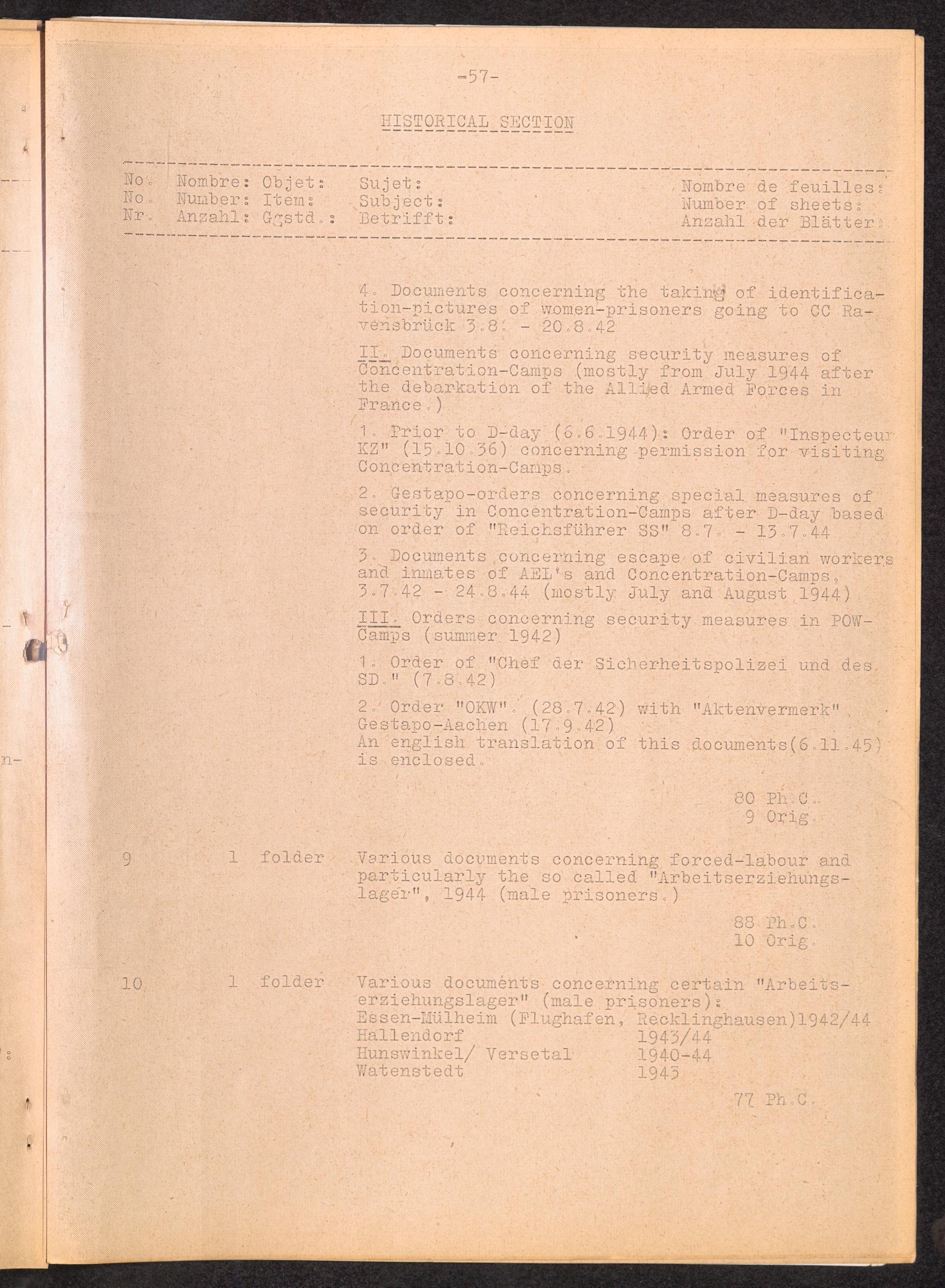 Inventar Konzentrations-Lager und Historische Abteilung (Teil 2) / International Tracing Service (ITS)Inventaire Camps De Concentration et Section Historique (2ème partie) / International Tracing Service (ITS)Inventory Concentration Camps and Historical Section (second part) / International Tracing Service (ITS)