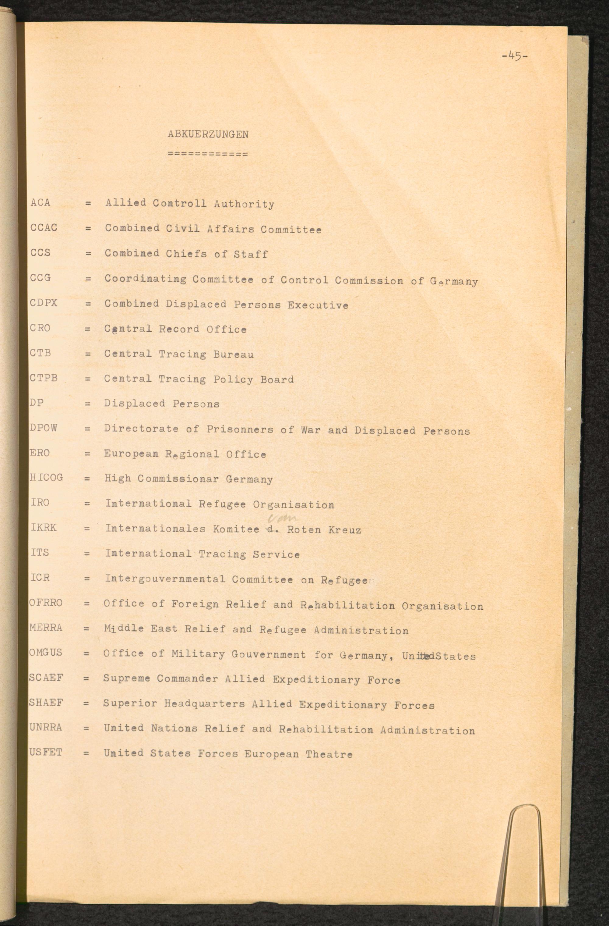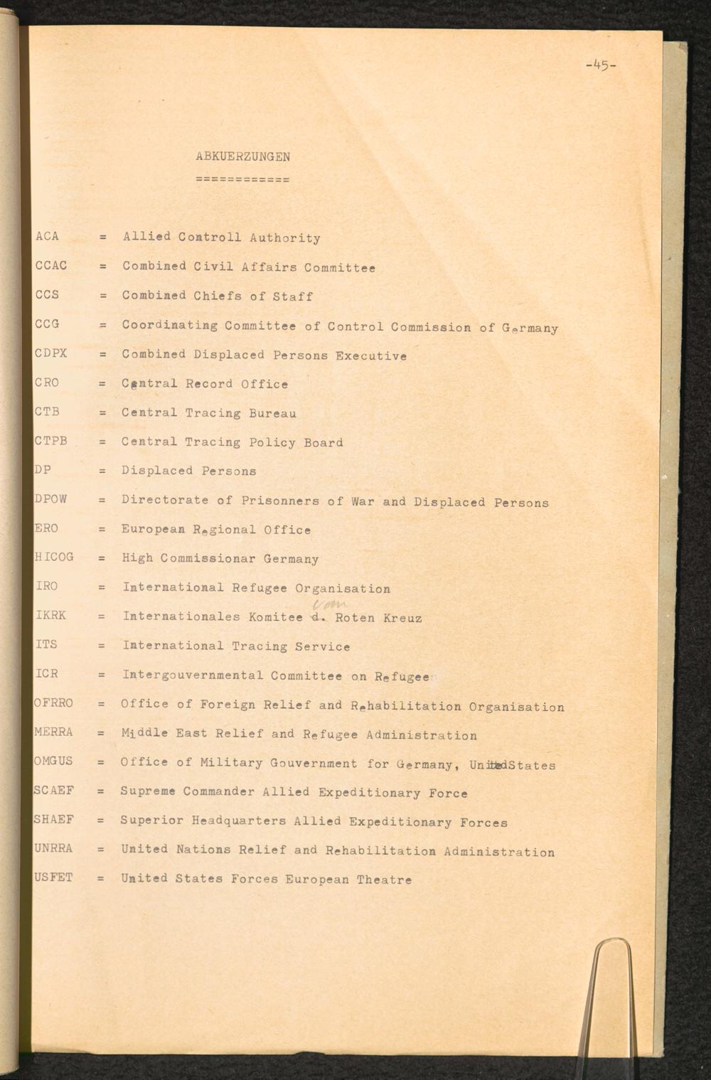 Geschichte der UNRRA in Europa unter besonderer Berücksichtigung der DP und des CTB... Abkürzungen