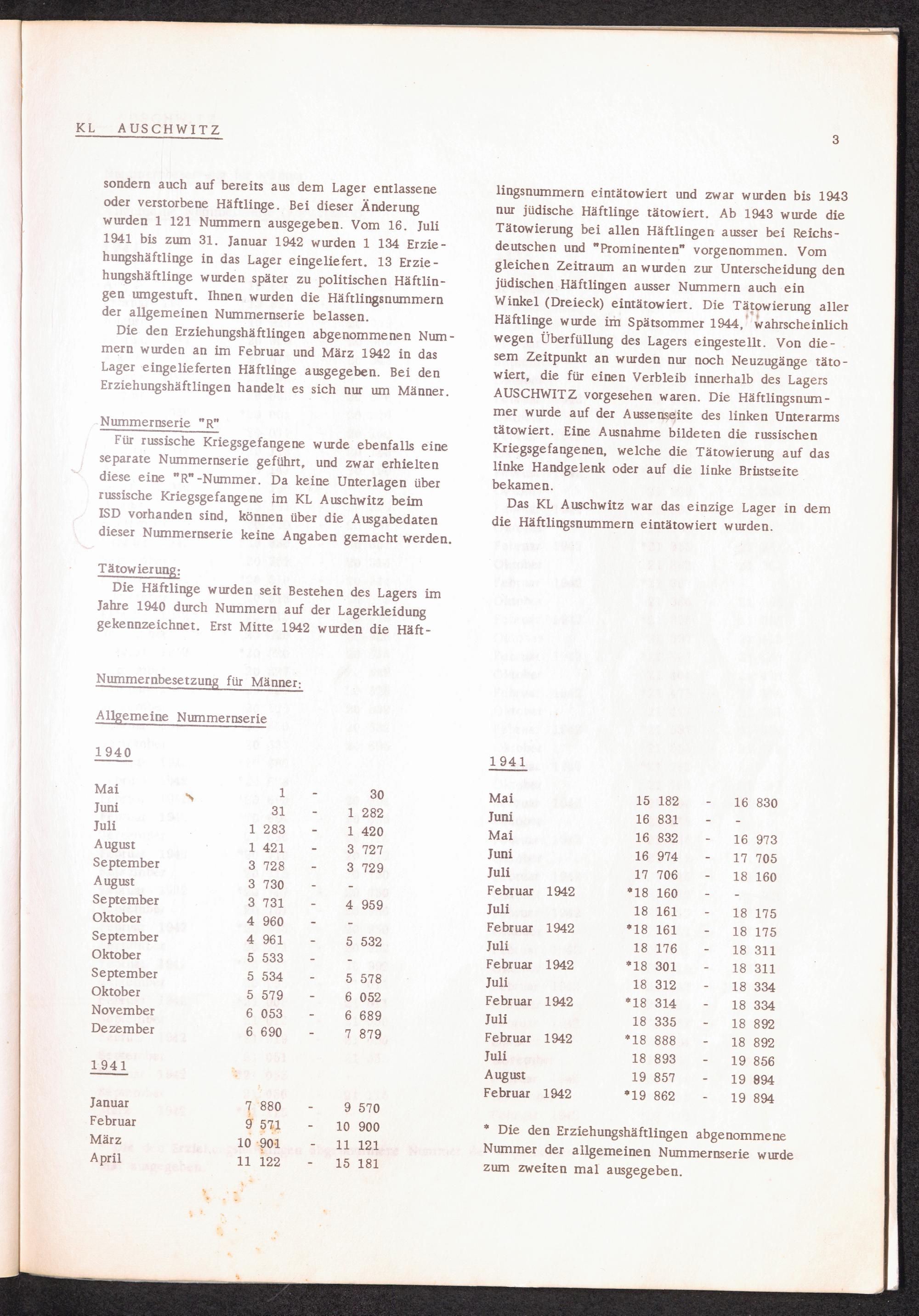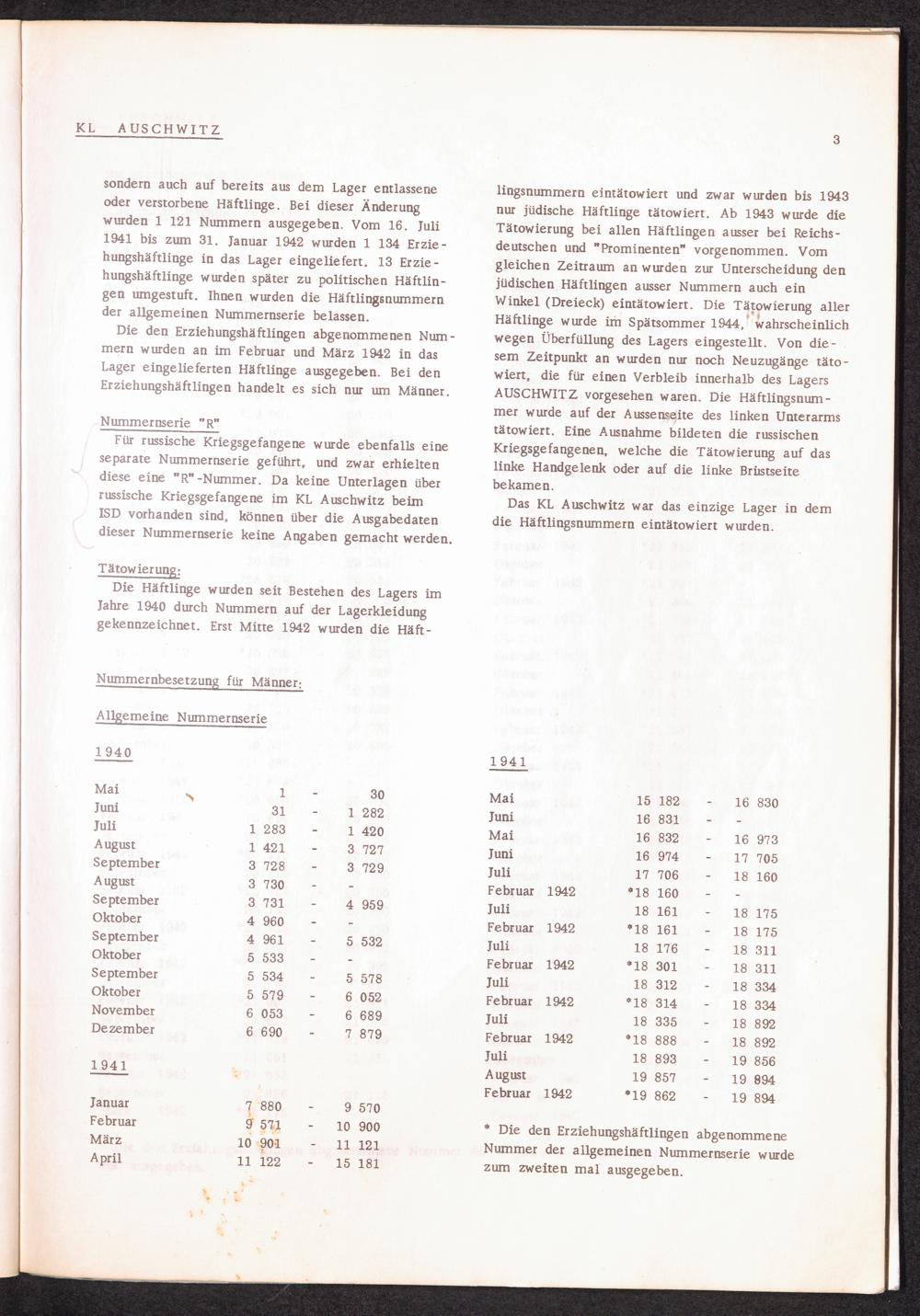 Häftlingsnummernzuteilung in Konzentrationslagern (mit Ergänzungen) KL Auschwitz