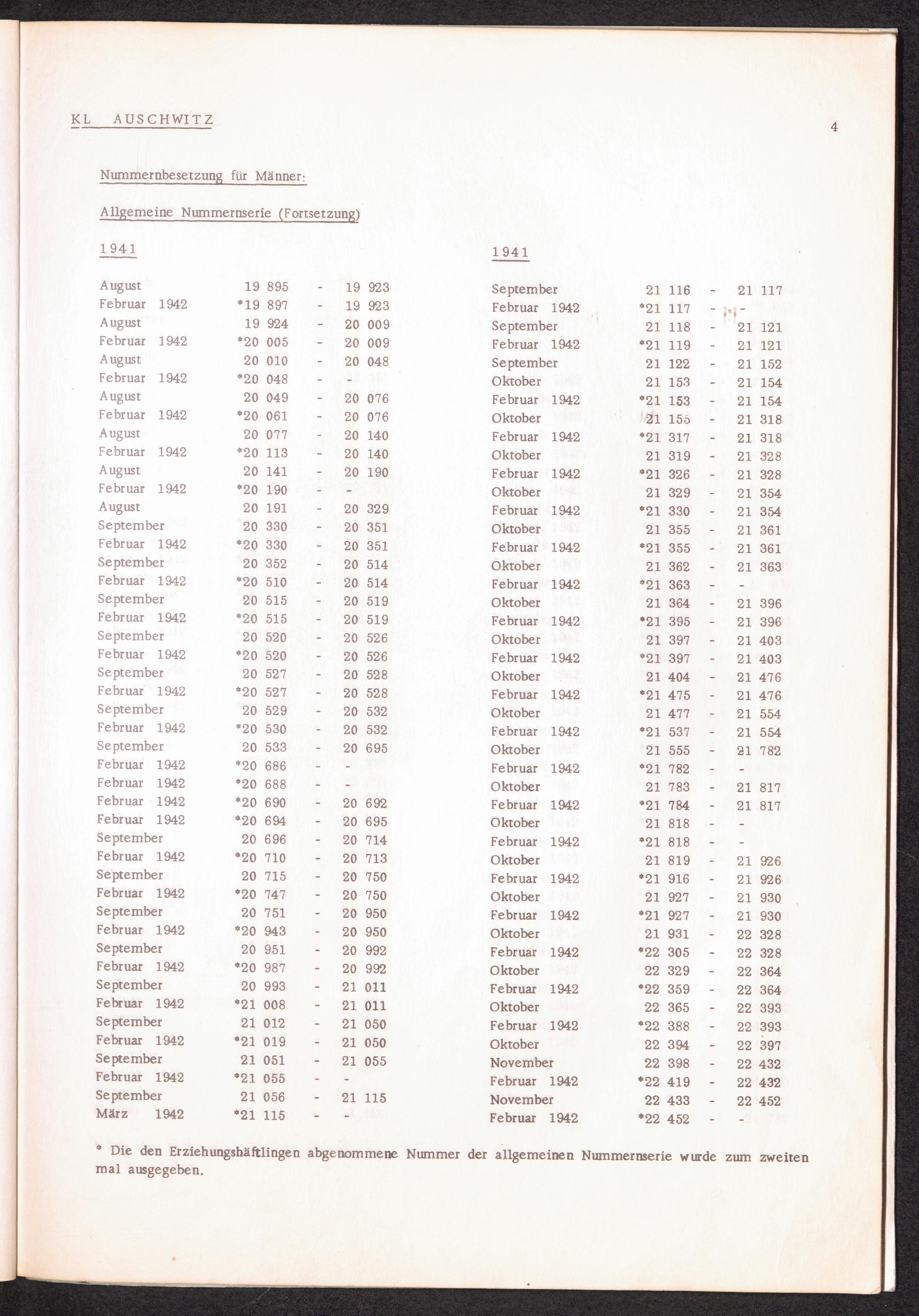Häftlingsnummernzuteilung in Konzentrationslagern (mit Ergänzungen) KL Auschwitz