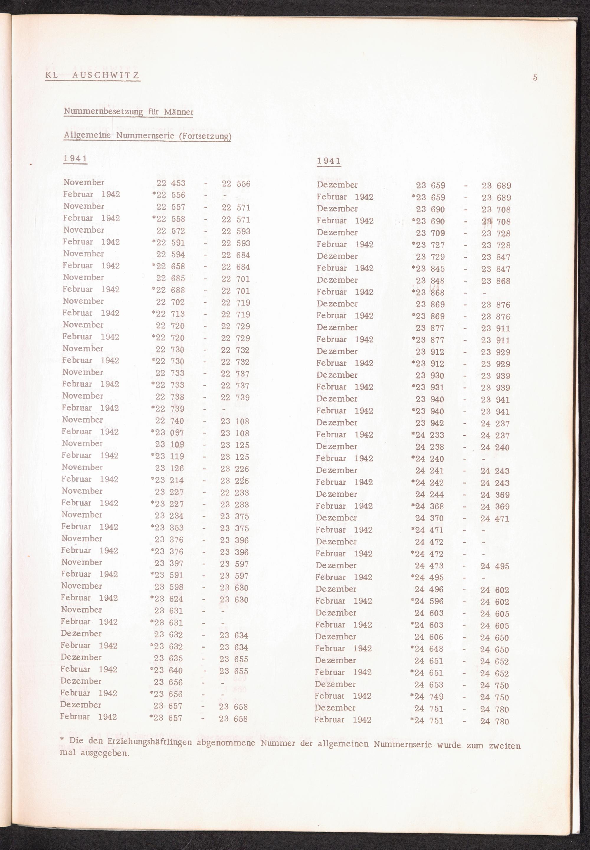 Häftlingsnummernzuteilung in Konzentrationslagern (mit Ergänzungen) KL Auschwitz