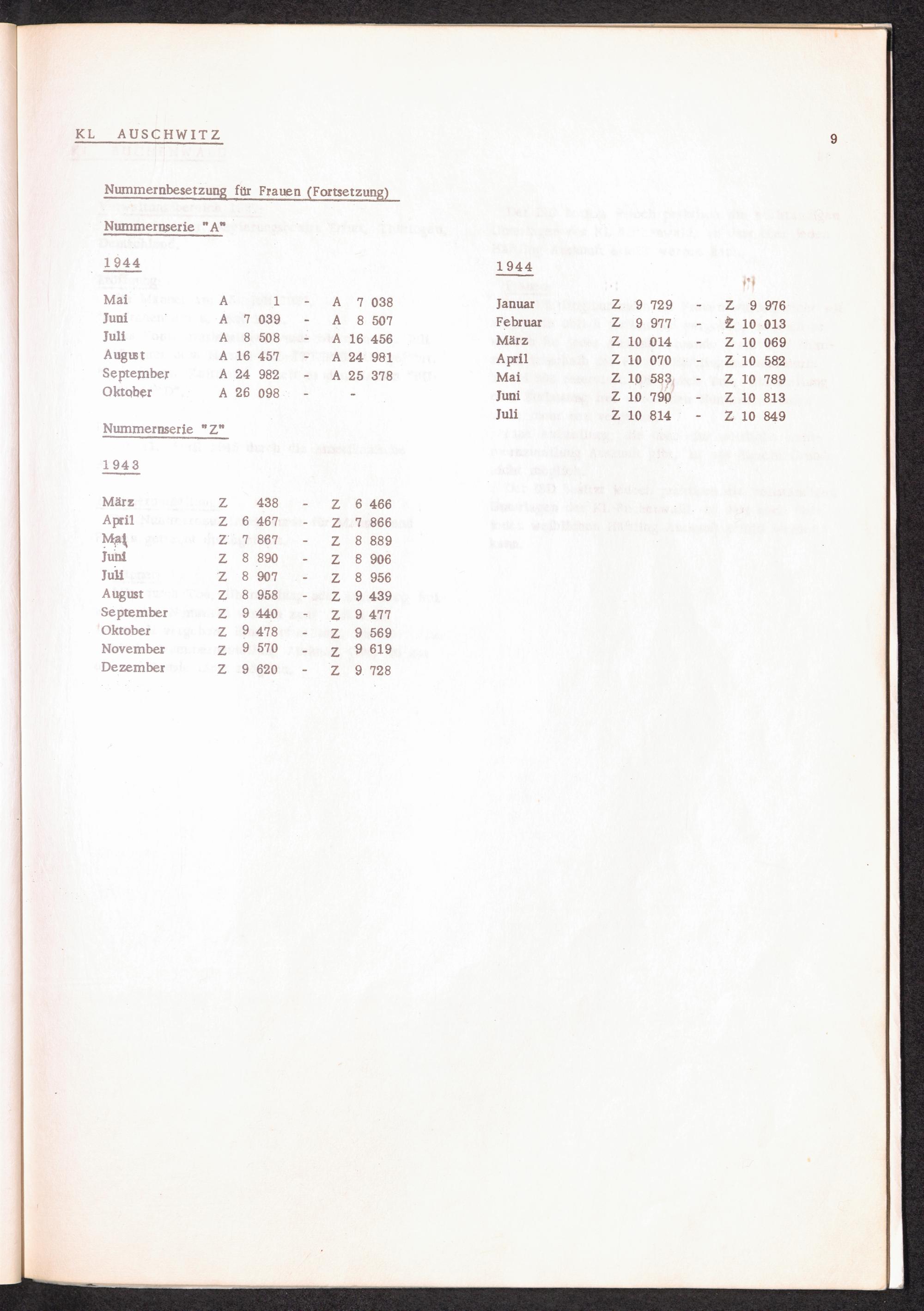 Häftlingsnummernzuteilung in Konzentrationslagern (mit Ergänzungen) KL Auschwitz