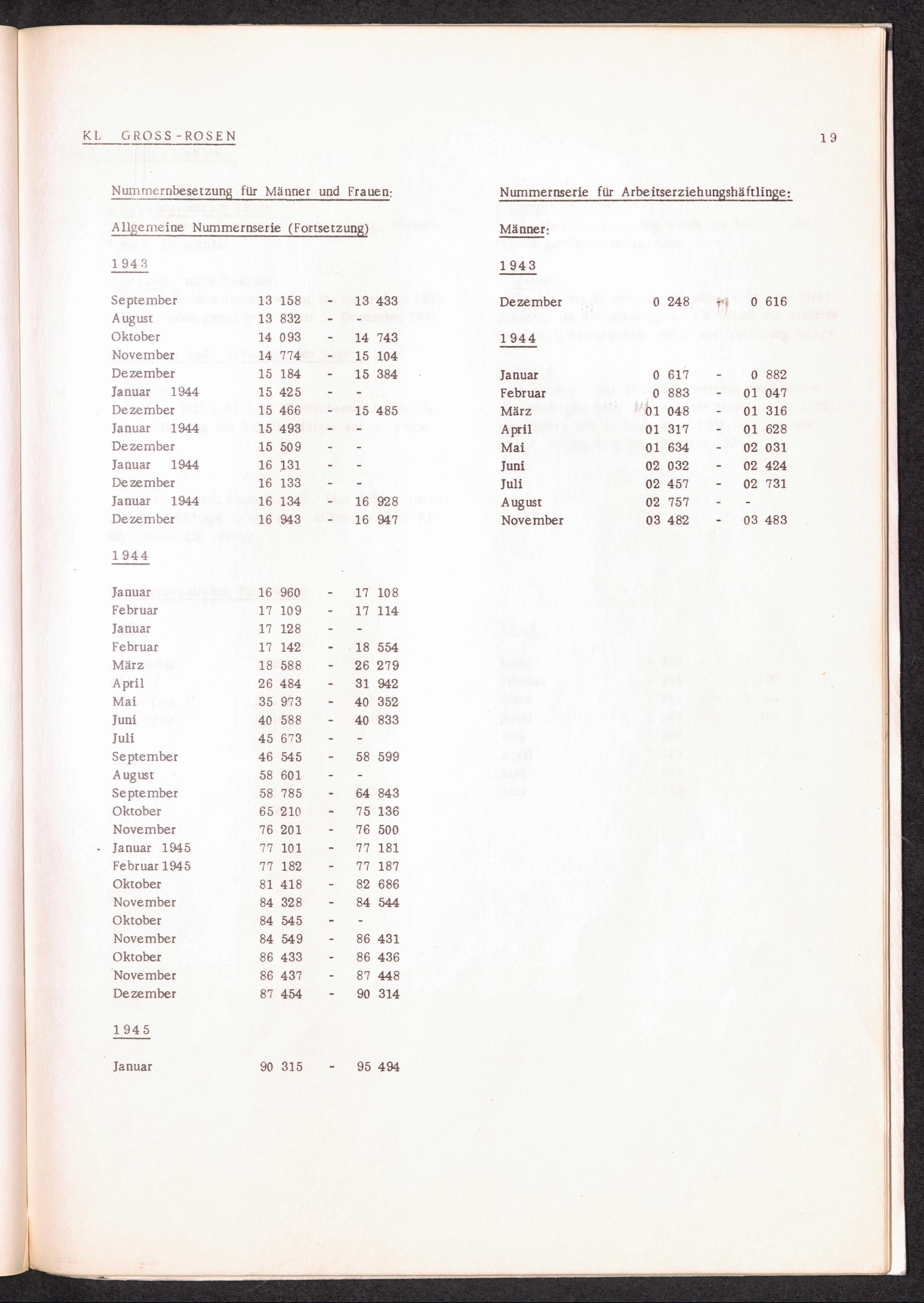 Häftlingsnummernzuteilung in Konzentrationslagern (mit Ergänzungen) KL Gross-Rosen
