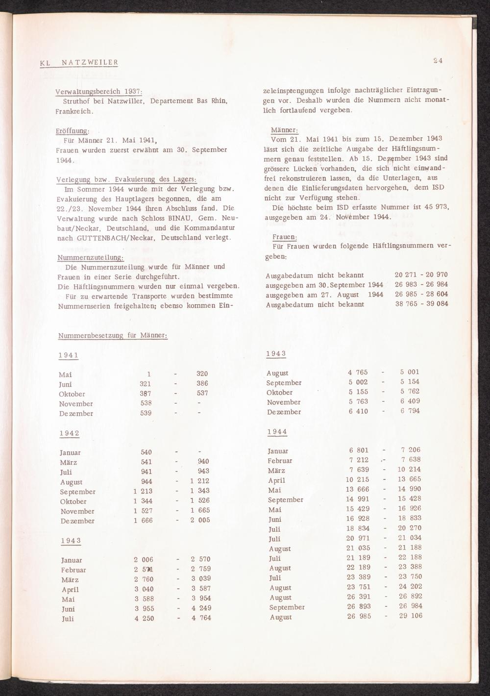 Häftlingsnummernzuteilung in Konzentrationslagern (mit Ergänzungen) KL Natzweiler