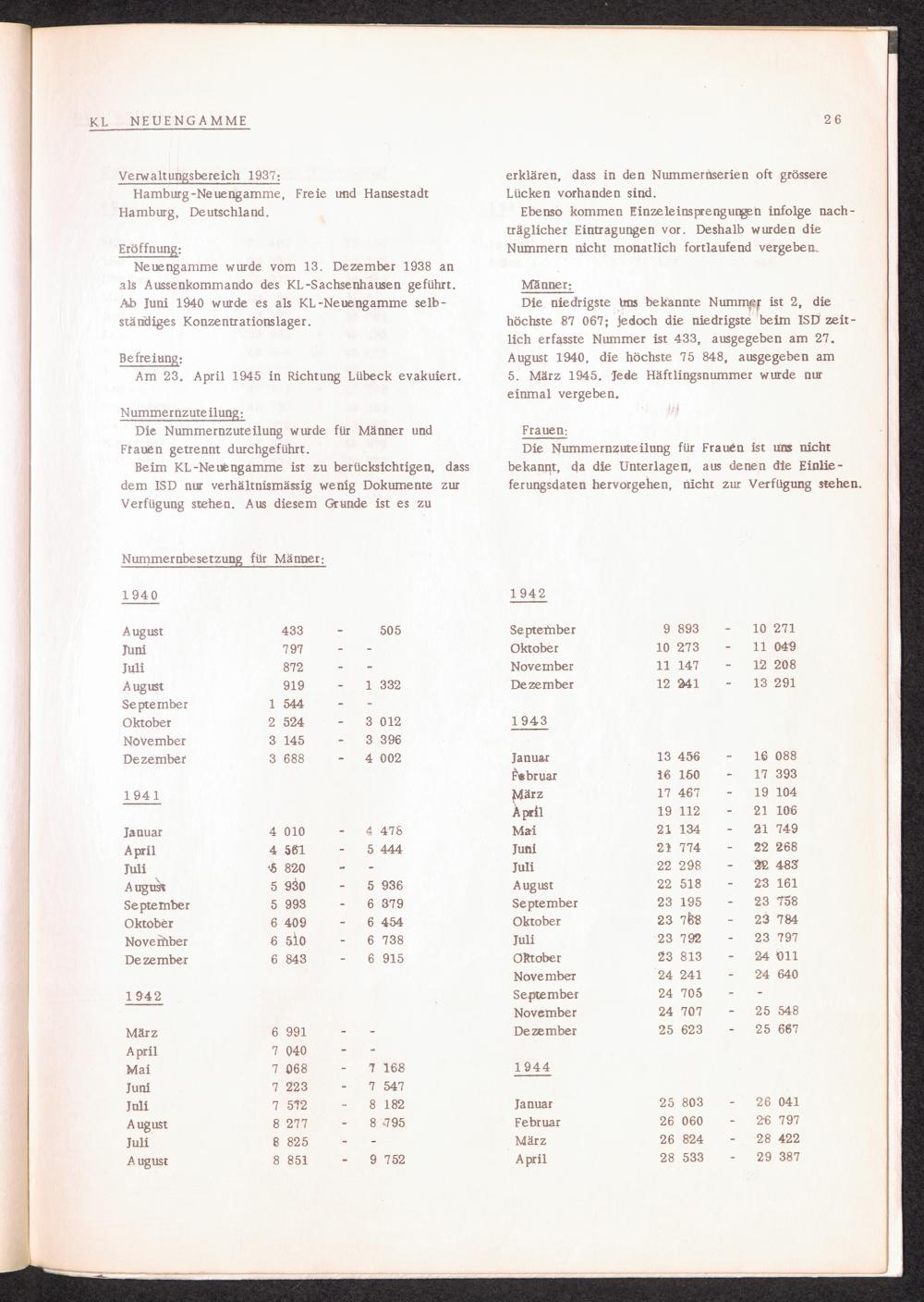 Häftlingsnummernzuteilung in Konzentrationslagern (mit Ergänzungen) KL Neuengamme